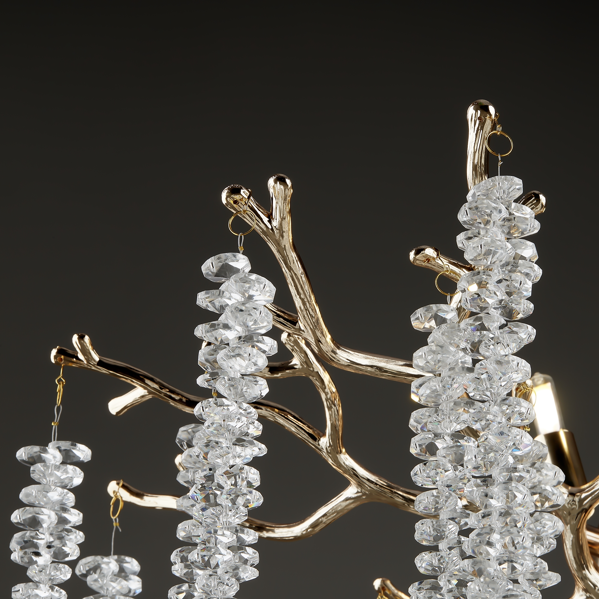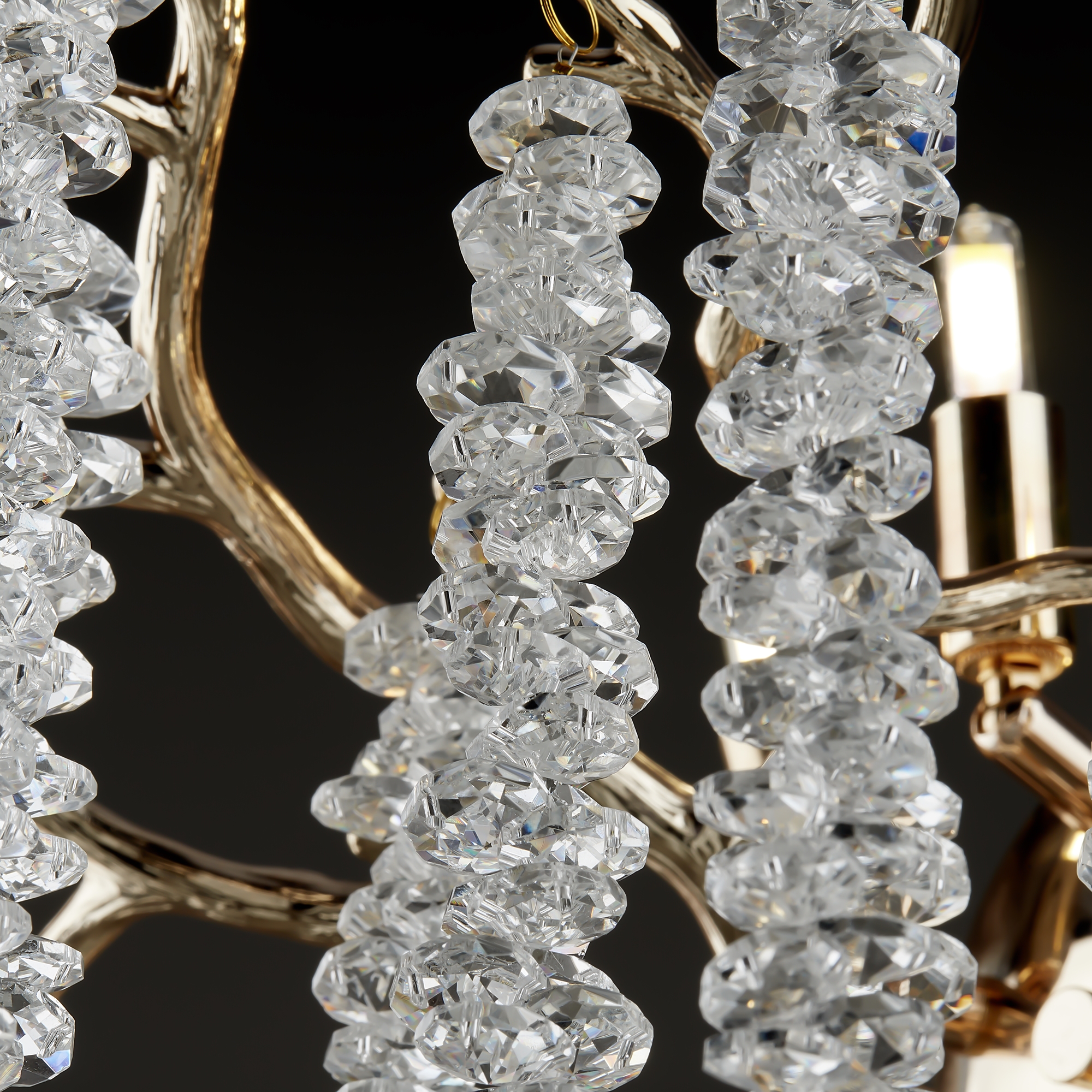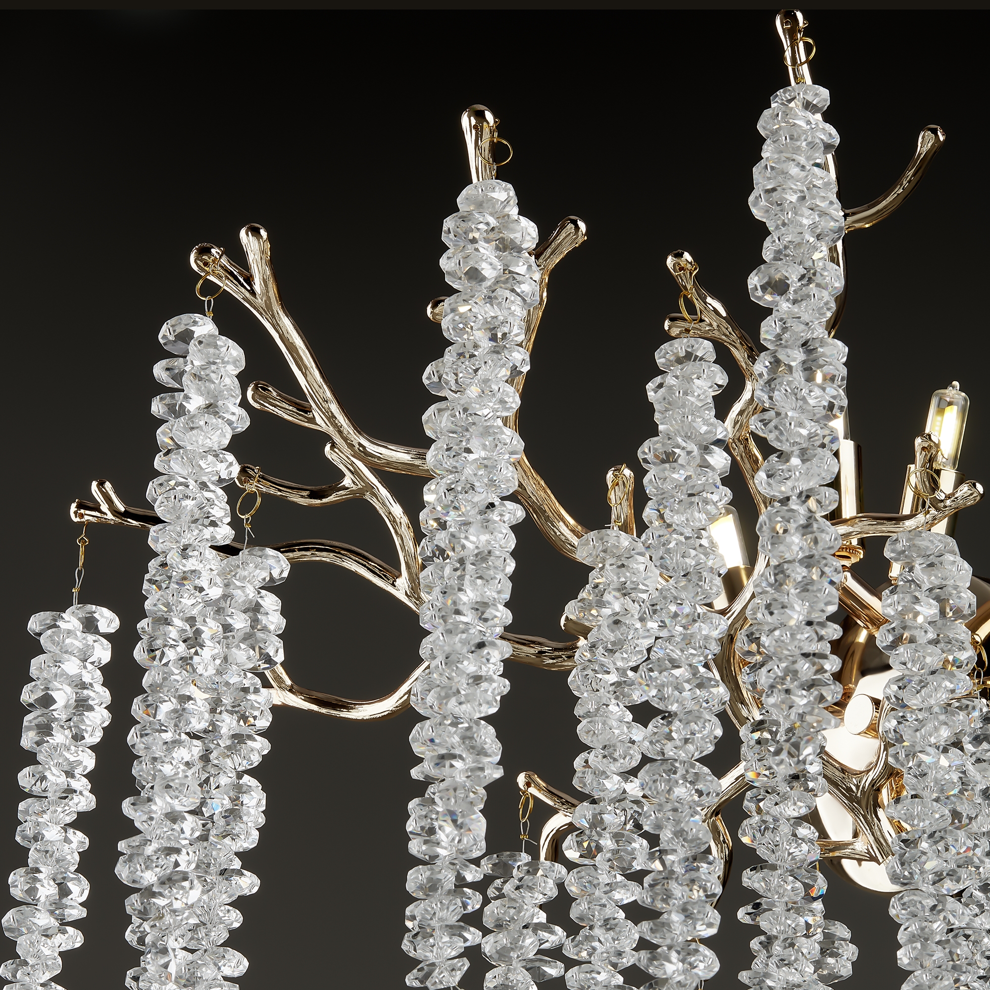 Материалы арматуры —металл, цвет — золото. Хрустальные декоративные элементы напоминают капельки - создают глубокие переливы света. Дизайн в трендовой растительной тематике. Источник света — лампа с цоколем G9 и с поворотной функцией.