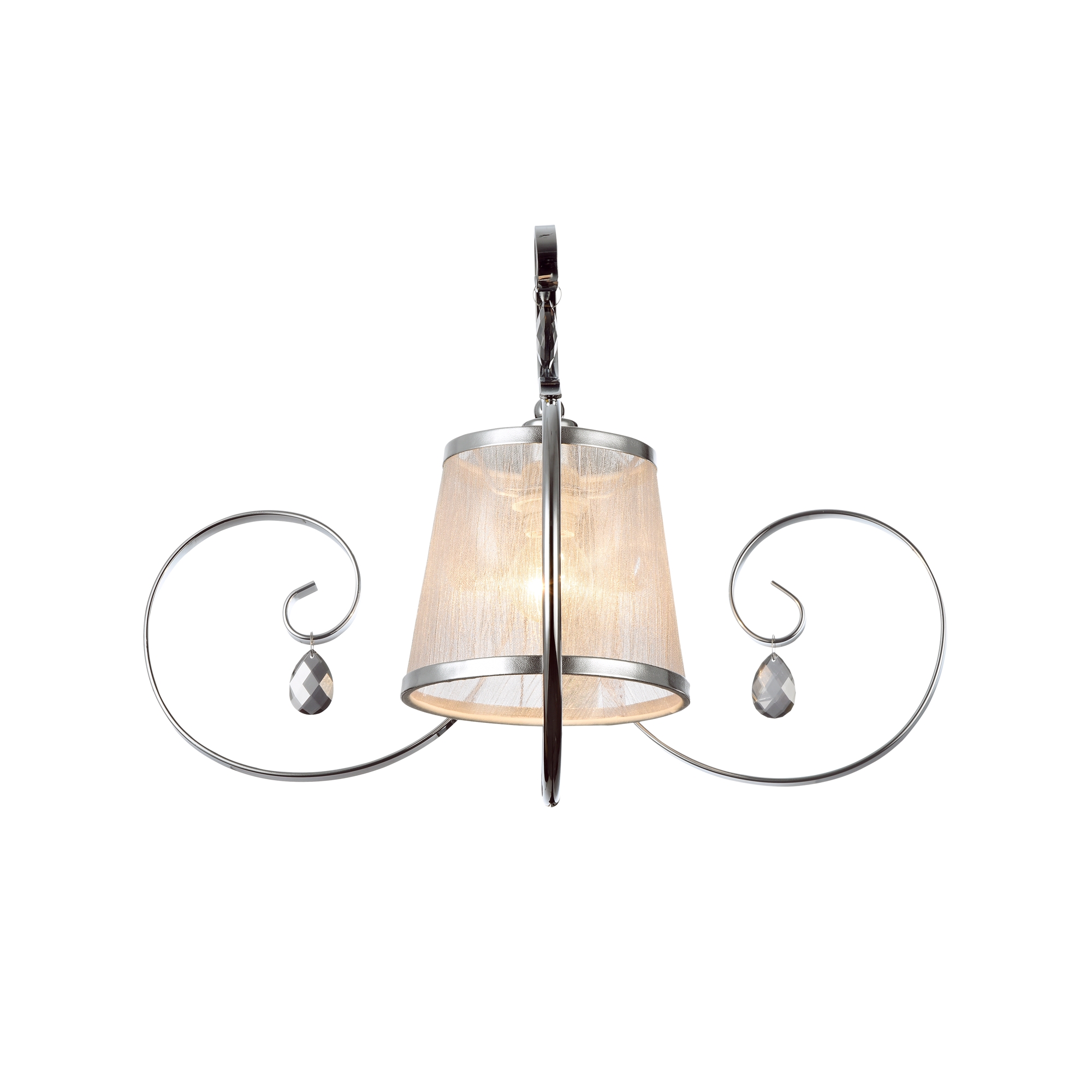 Светильники серии Simone выполнены в классическом стиле. Арматура цвета «античное серебро», абажуры из органзы на ПВХ. Люстры подходят для помещений с невысокими потолками благодаря конструкции «2 в 1». Дизайн изделий дополнен декоративными подвесками.