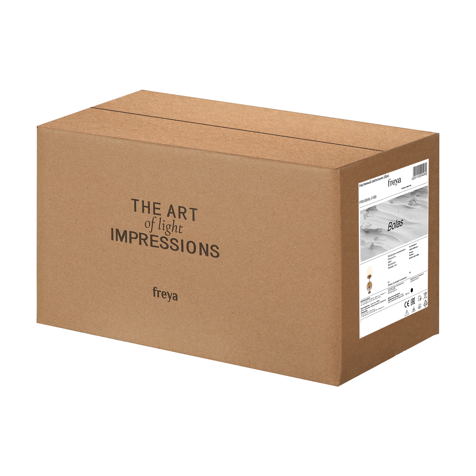 Металлическая арматура окрашена в цвет латуни. Плафоны-сферы из матового белого стекла. Декор – прозрачное рельефное стекло. Источник света – лампа с цоколем Е27.