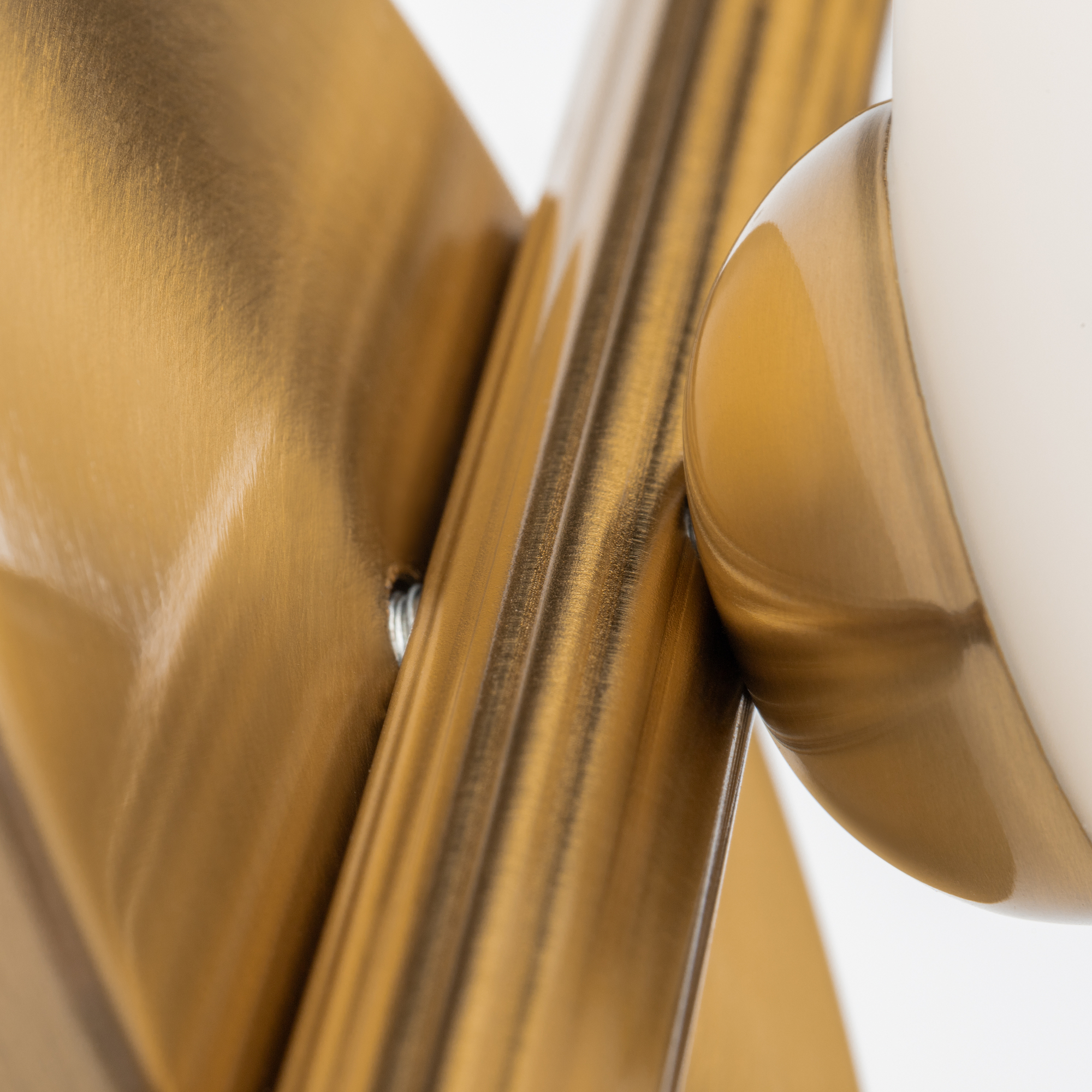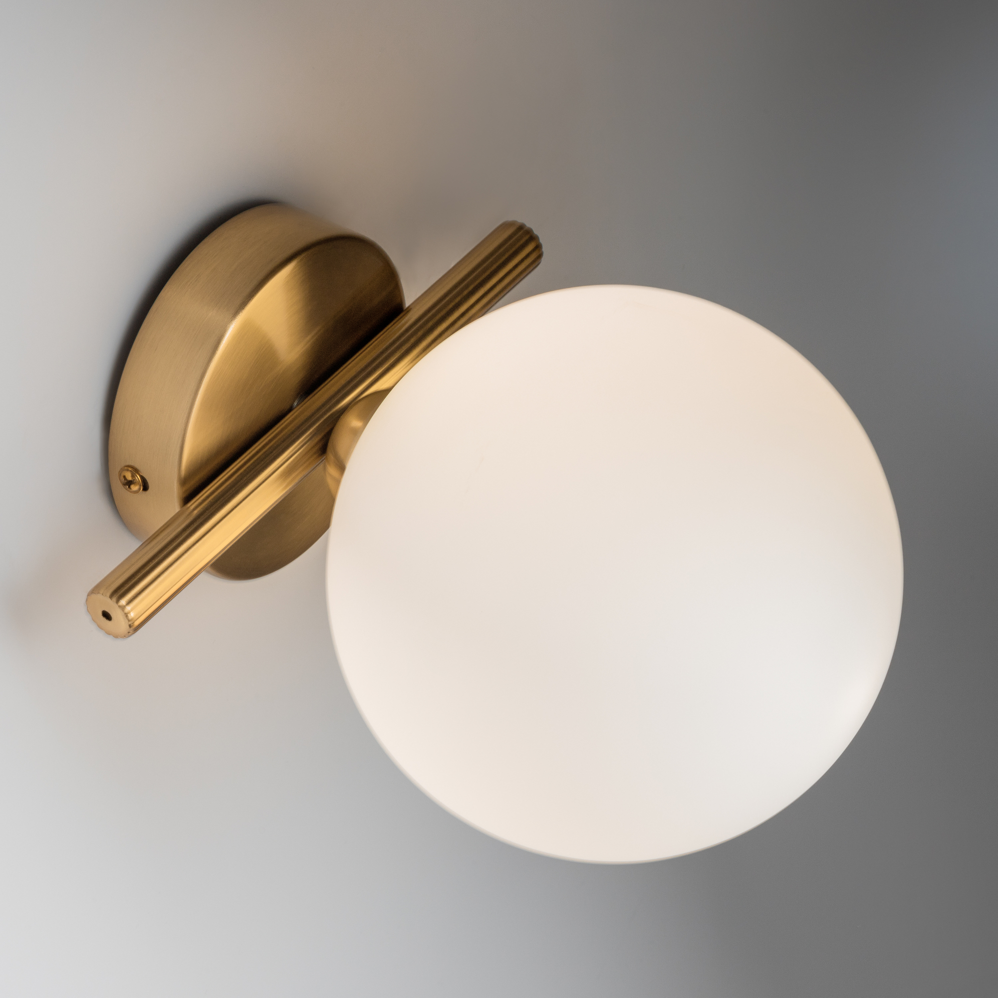 Материал арматуры — рифленый металл, цвет — латунь. Плафоны-сферы из белого матового стекла для мягкого заливающего света. Воздушный образ плафонов, строгие тонкие линии арматуры придадут интерьеру изящество и легкость. Высота подвесов регулируется. Источник света — лампы с цоколем G9.