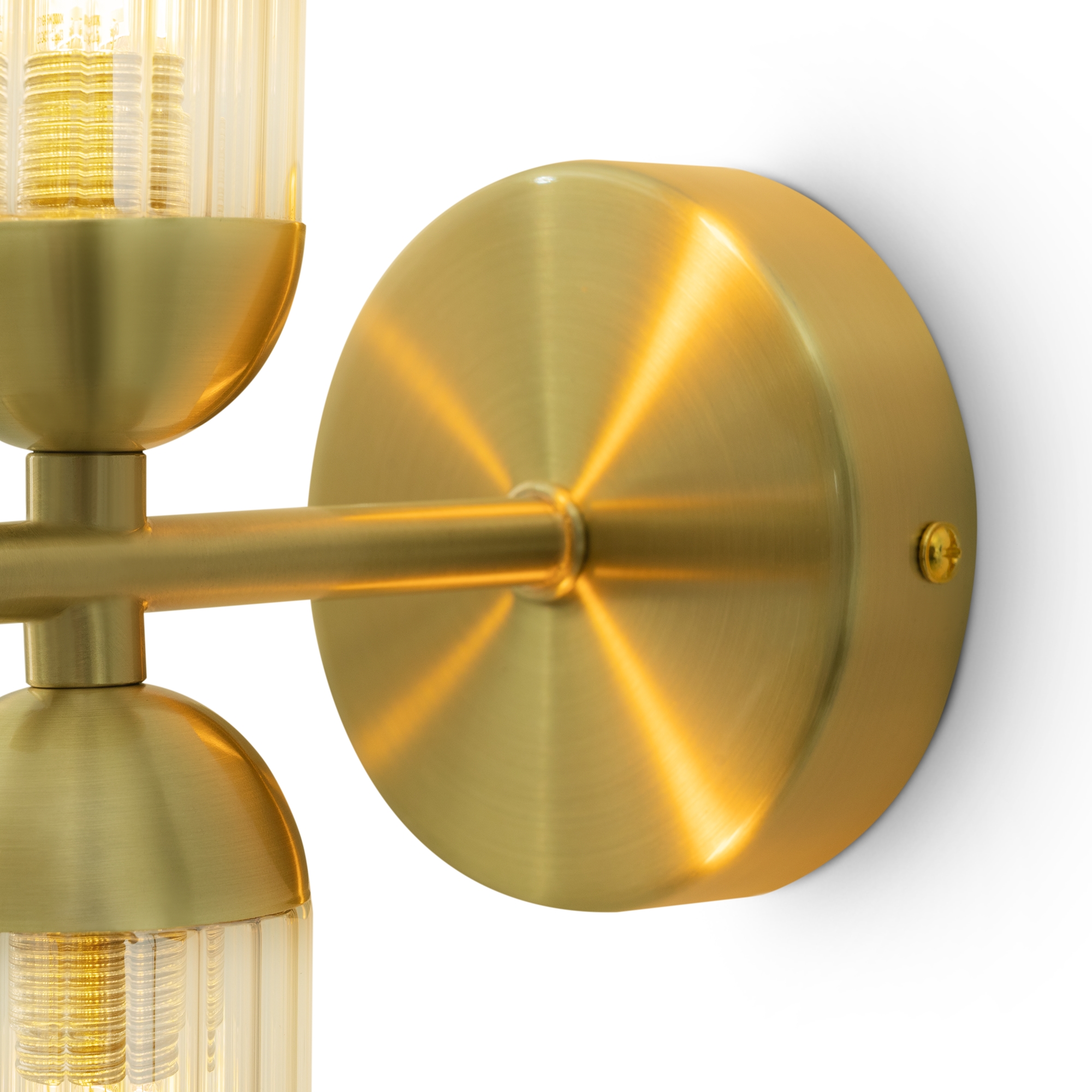 Арматура из металла, цвет — золото. Рельефные плафоны в тренде ZIGZAG. Материал — стекло, цвет — янтарный. Высота подвесных светильников регулируется. Плафоны закреплены на металлическую сферу. Источник света — лампа с цоколем G9.