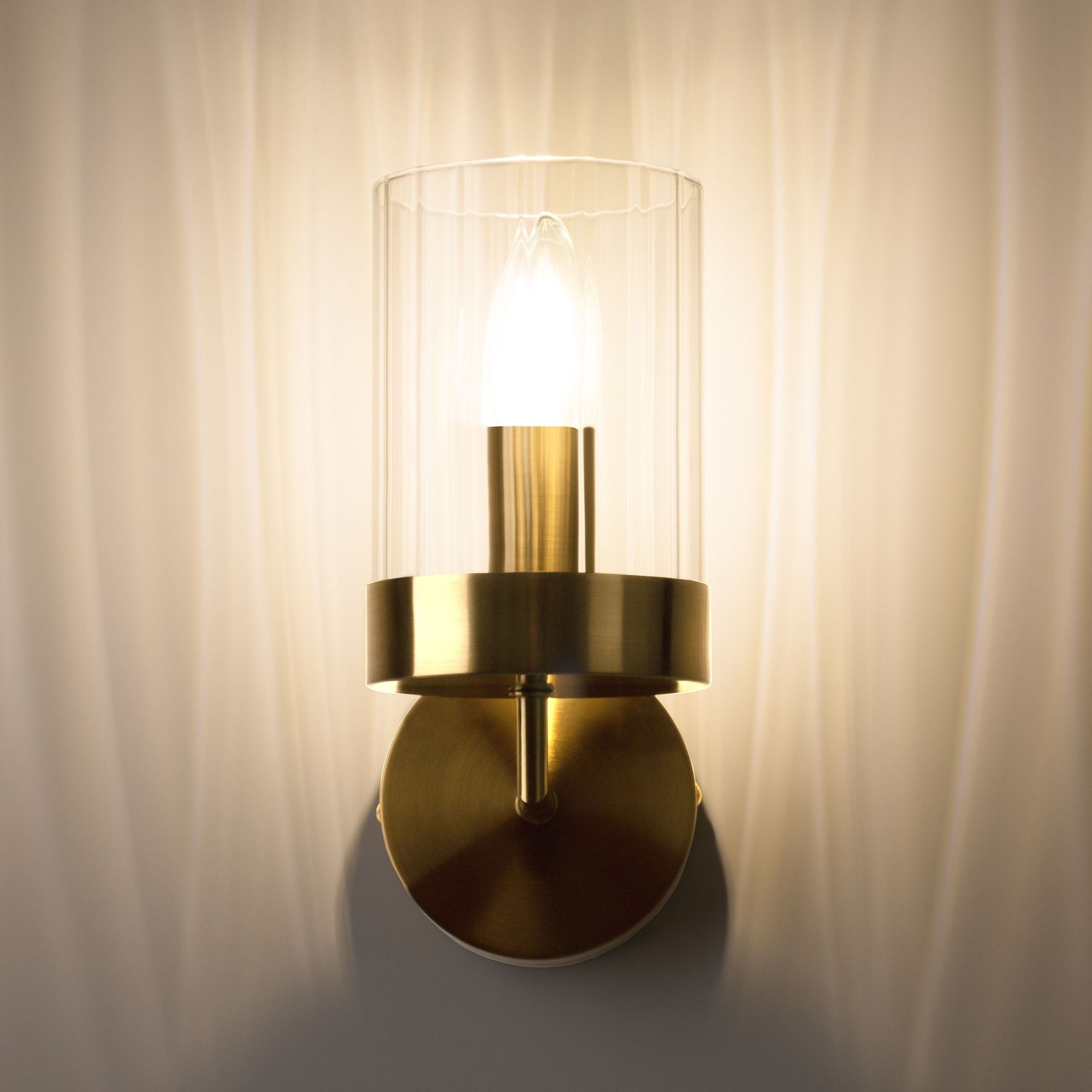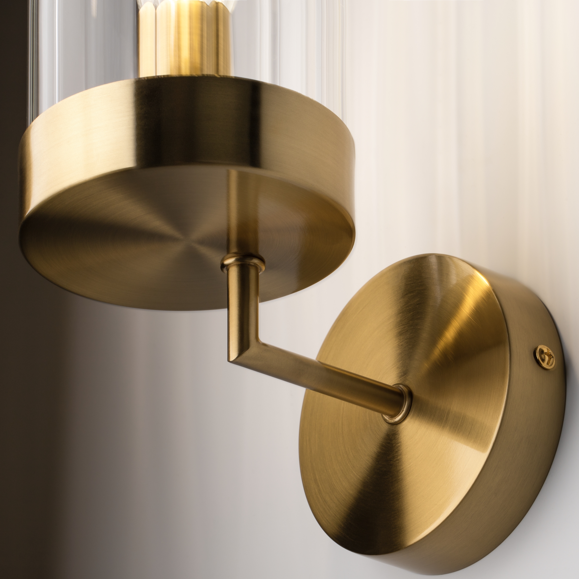 Арматура металл. Цвет арматуры латунь. Плафоны из рельефного стекла в форме цилиндра направлены вверх. Потолочные светильники подойдут для помещений с низкими потолками. Источник света лампа. Цоколь E14.