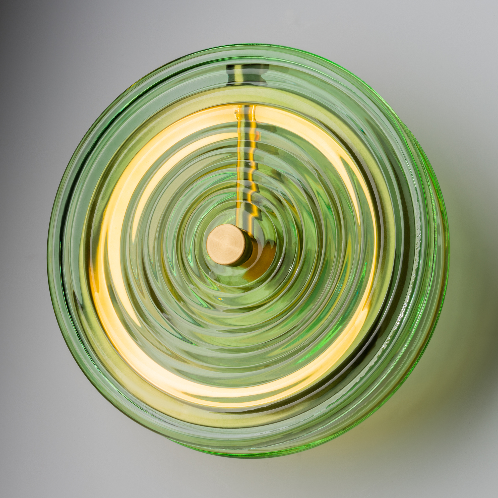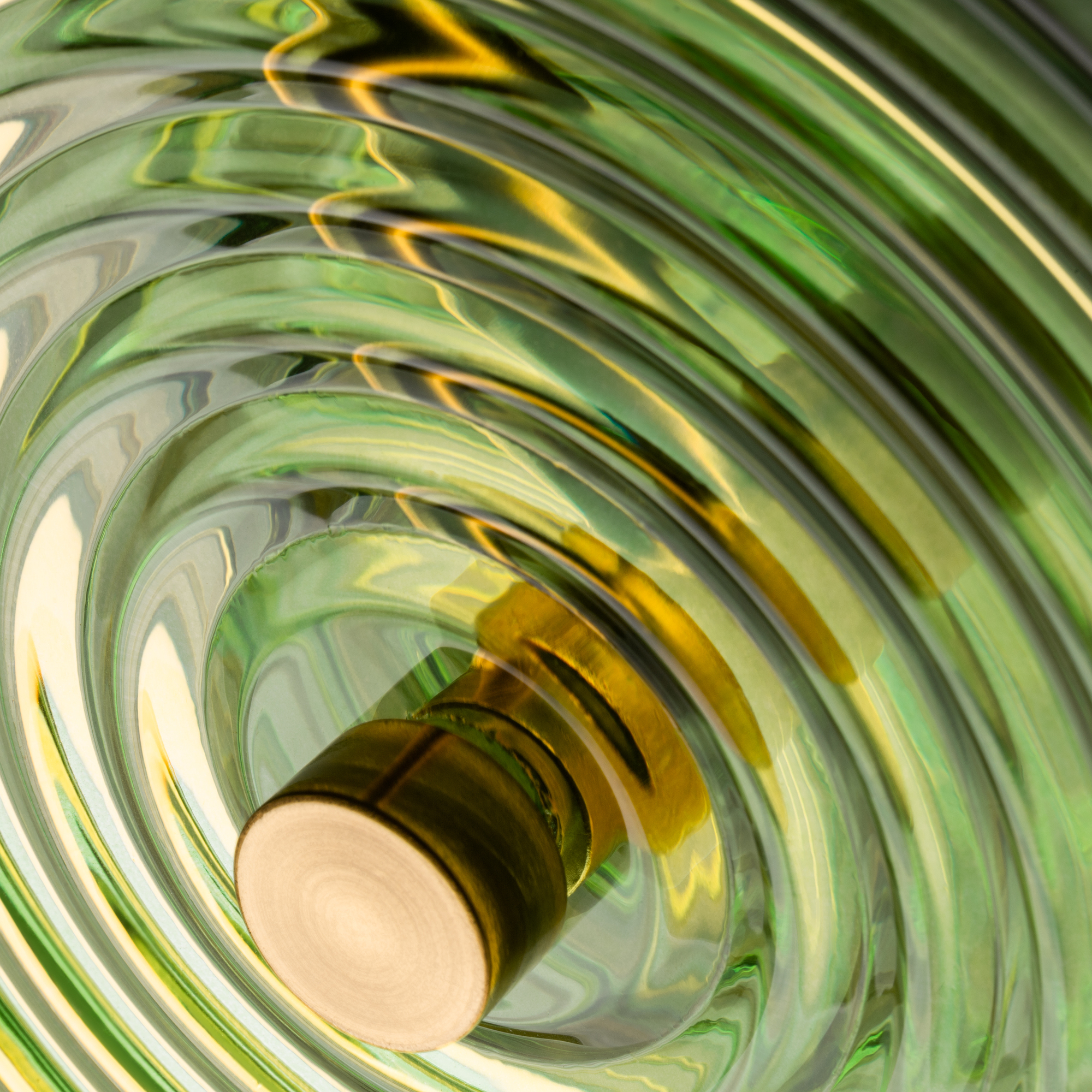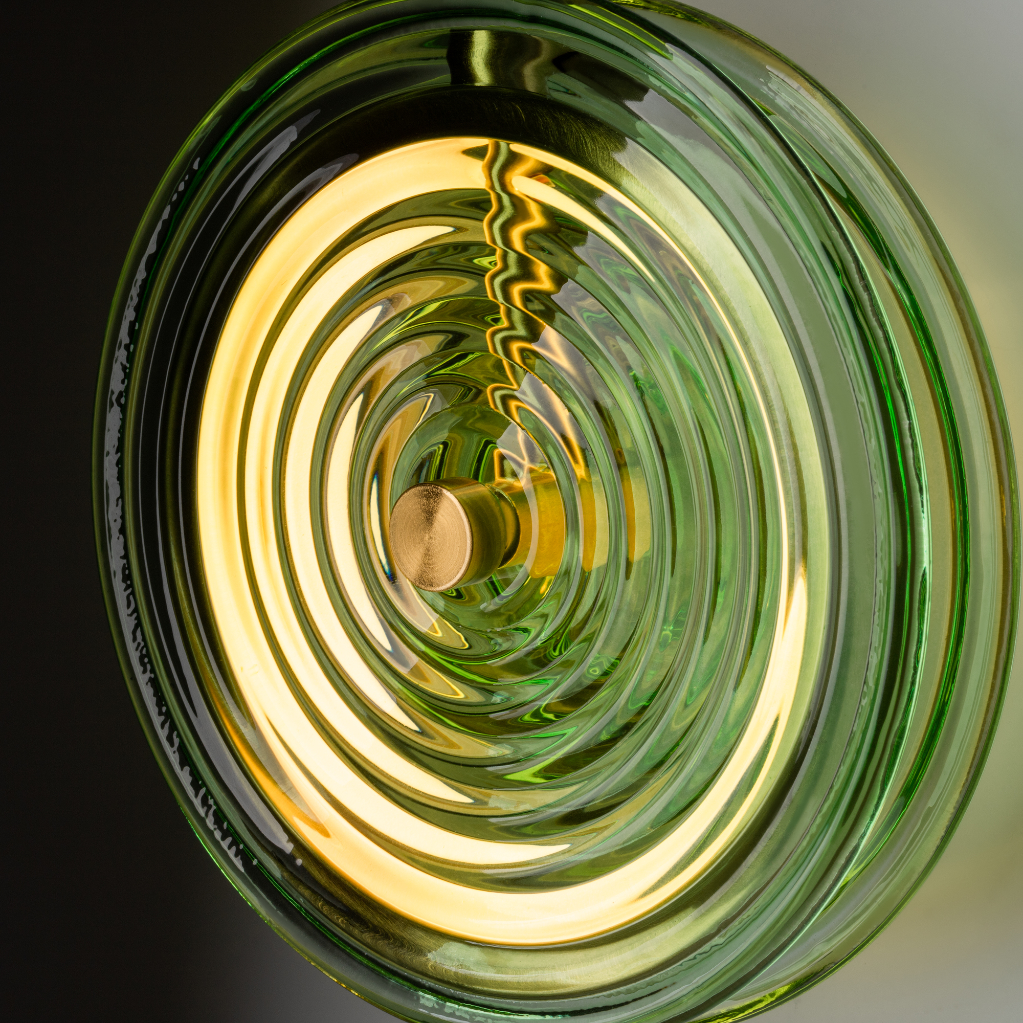 Арматура - металл. Цвет арматуры латунь. Плафоны из стекла в форме леденцов выполнены в четырех цветах: серый, зеленый, прозрачный и желто-оранжевый. Широкий спектр типов светильников: торшеры, настенные бра и подвесы. LED источник света. Цветовая температура 3000К.