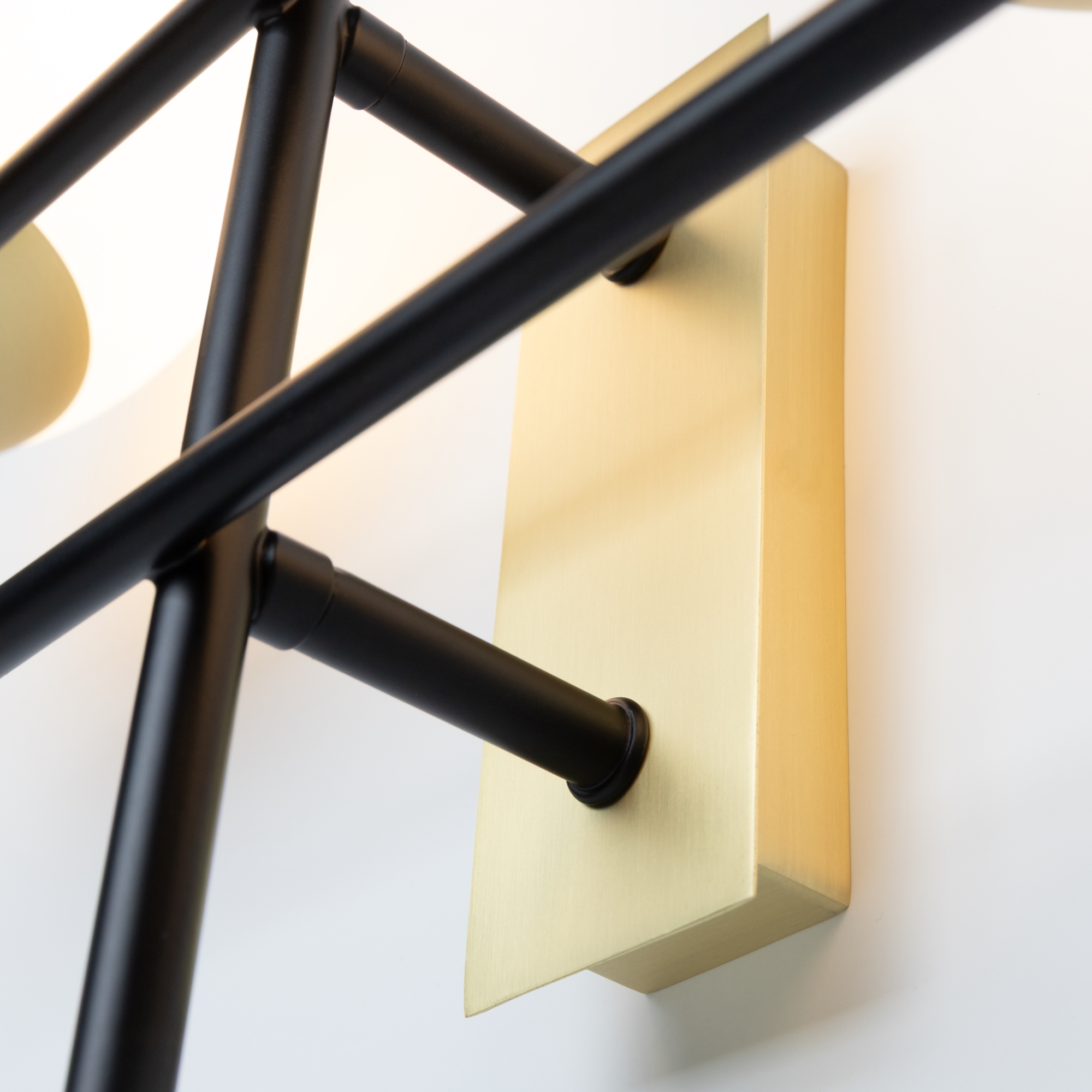 Арматура из металла в цвете матового золота. Плафоны-сферы из матового выдувного стекла. Модная асимметрия в дизайне. Источник света — лампы с цоколем Е14.
