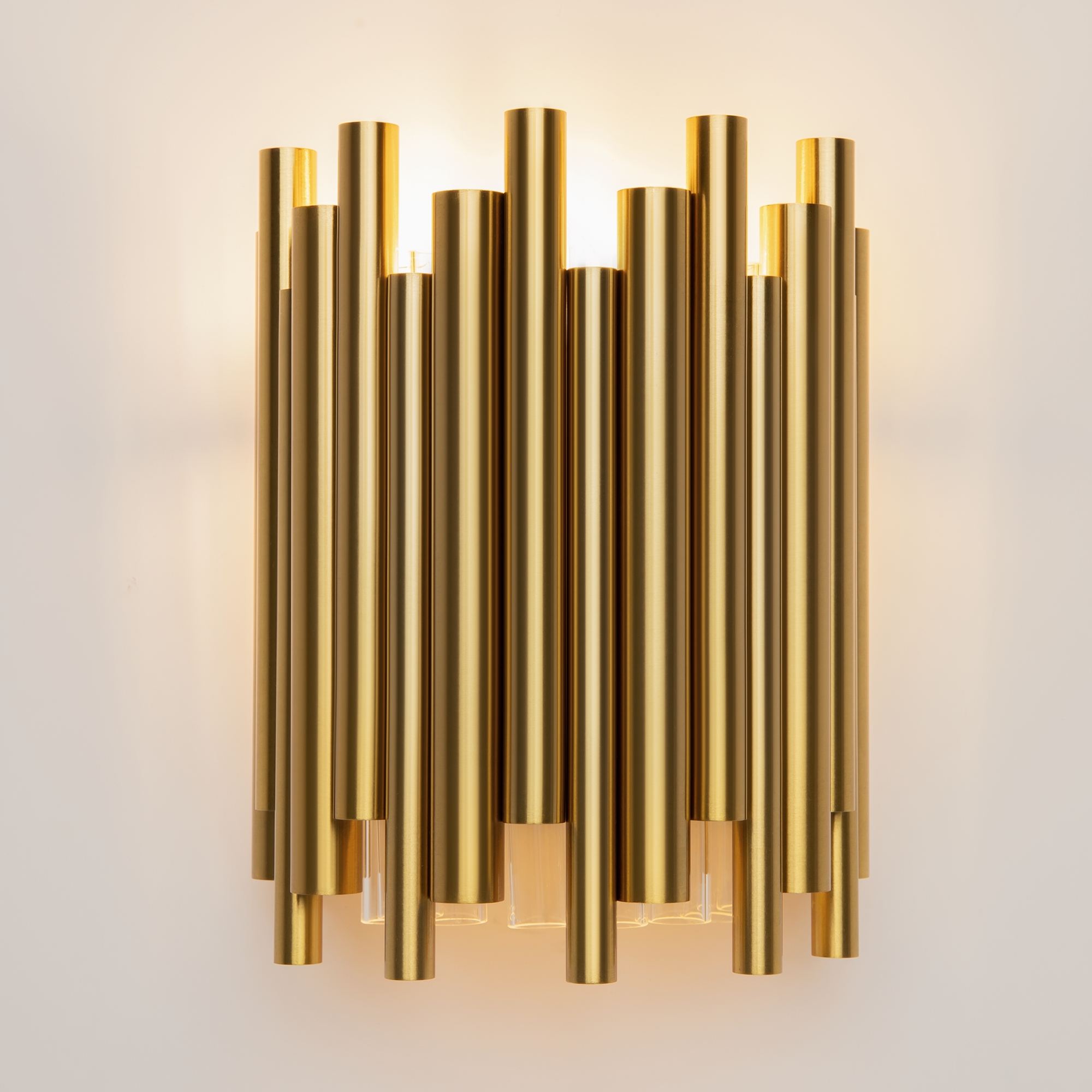 Материал арматуры – металл, цвет – латунь. Декор в виде трубок из нержавеющей стали в бронзовом цвете. Последний ряд декора – стеклянные трубки – обеспечивает невесомый силуэт.