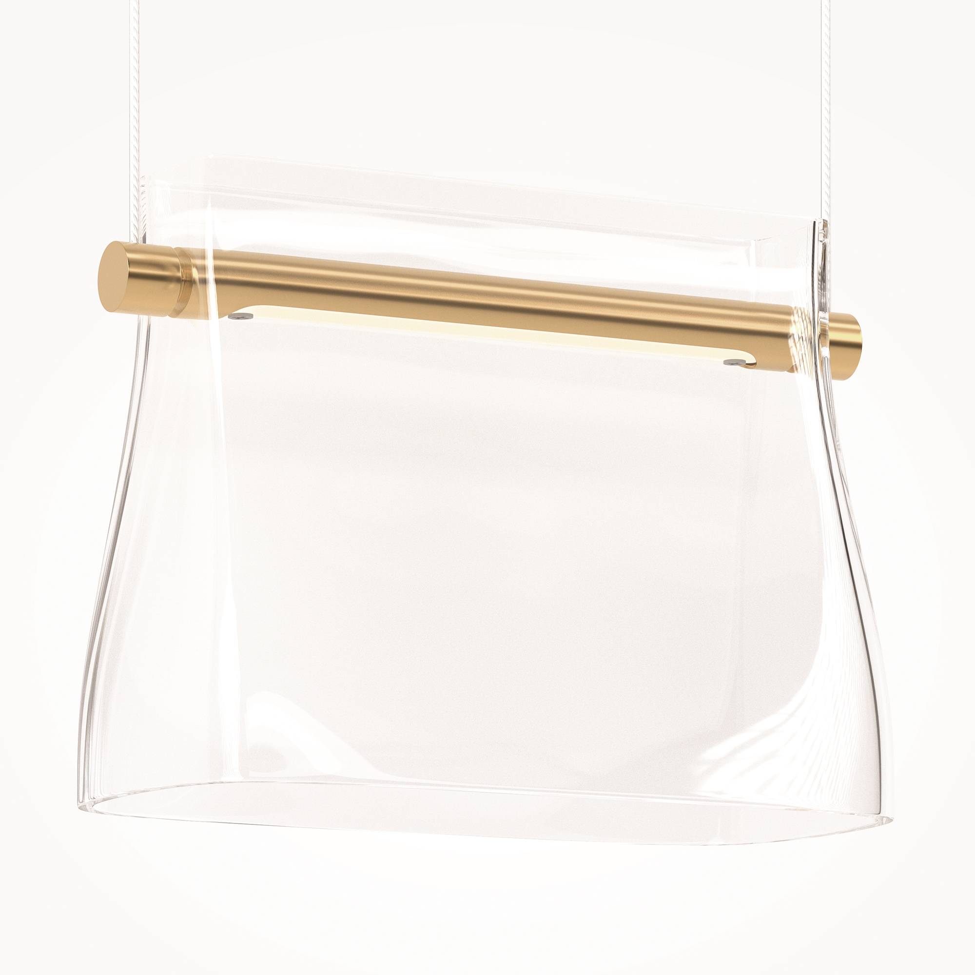 Цвет металлической арматуры — латунь с сатинированным финишем, плафоны — прозрачное стекло. Источник света: LED. Цветовая температура светильников 3000К, угол рассеивания — 120 градусов. Настенные бра и подвесные светильники оснащены регулируемым проводом длиной до 3 метров, что позволяет использовать их в помещениях с высокими потолками.