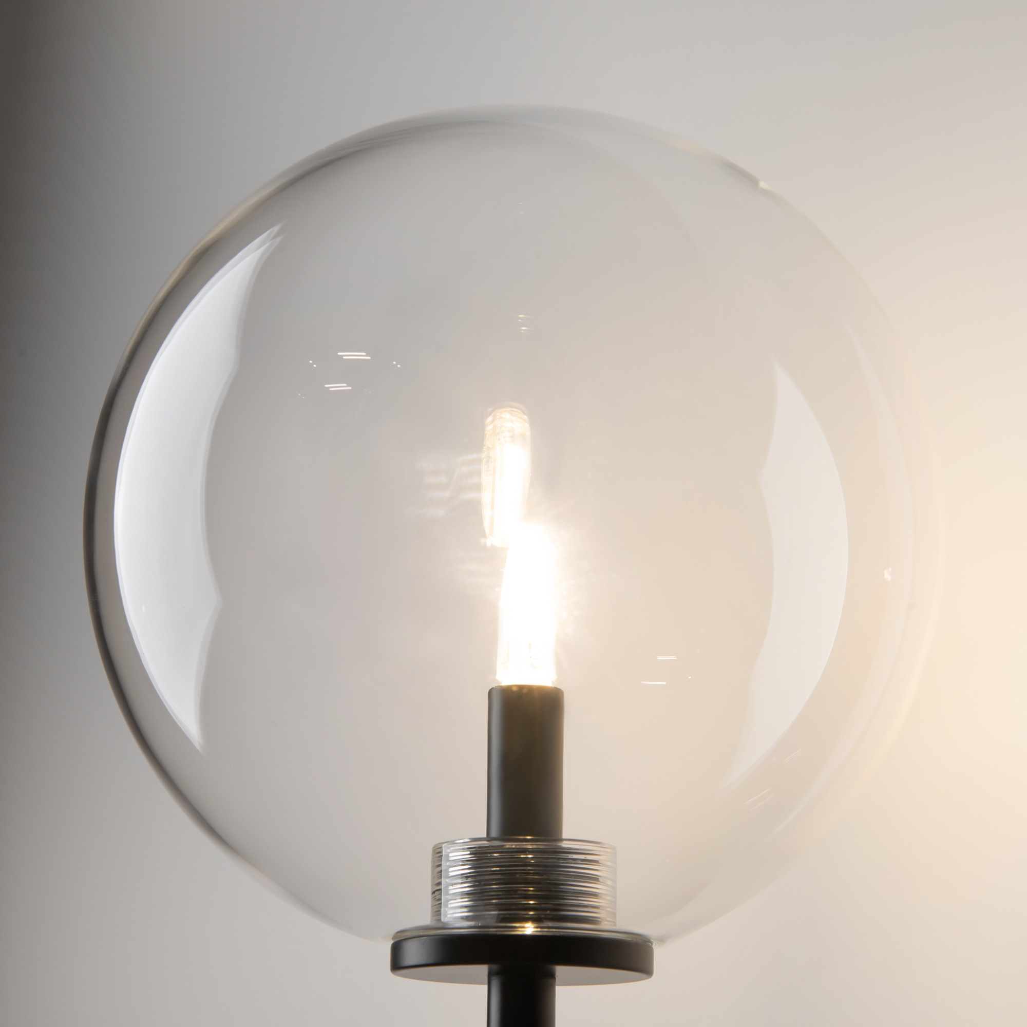 Материал арматуры - металл. Цвет - латунь, черный. Изящные линии арматуры, прозрачные плафоны из стекла в виде шара с миниатюрными лампами создают эффект воздушности светильников. Регулируемая высота подвесных светильников. Цоколь G4.