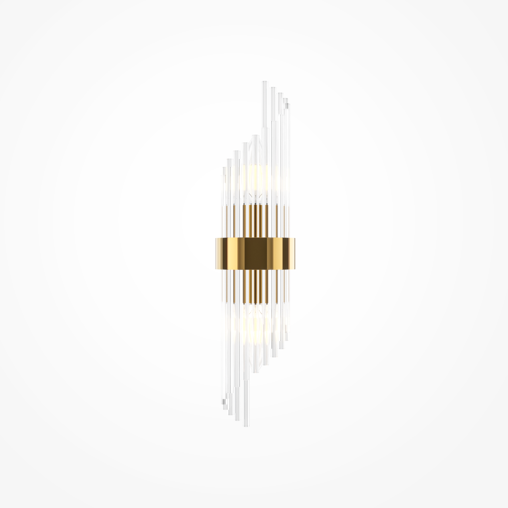 Материал арматуры - металл, цвет - золото. Декоративный элемент из прозрачного стекла в форме рельефных трубок. Цоколь Е14. Лампы в комплект не входят.