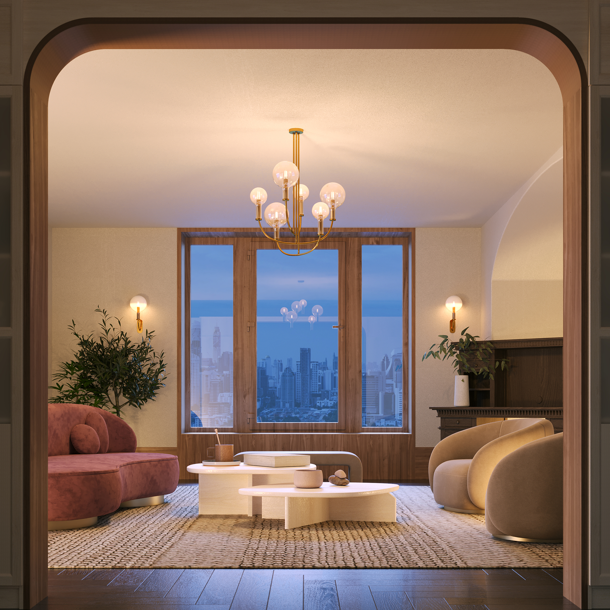 Оригинальный дизайн в американском неоклассическом стиле. Два цветовых решения: черная арматура в сочетании с белыми градиентными плафонами, арматура в цвете латуни и прозрачные плафоны. Материал арматуры — металл. Плафоны из выдувного стекла. Арочные силуэты в духе современных трендов. Подвесные светильники с регулируемой высотой и лаконичное бра. Стоит также обратить внимание на особенность источника света – к серии подходят только лампы с цоколем Е14, формы Т25.