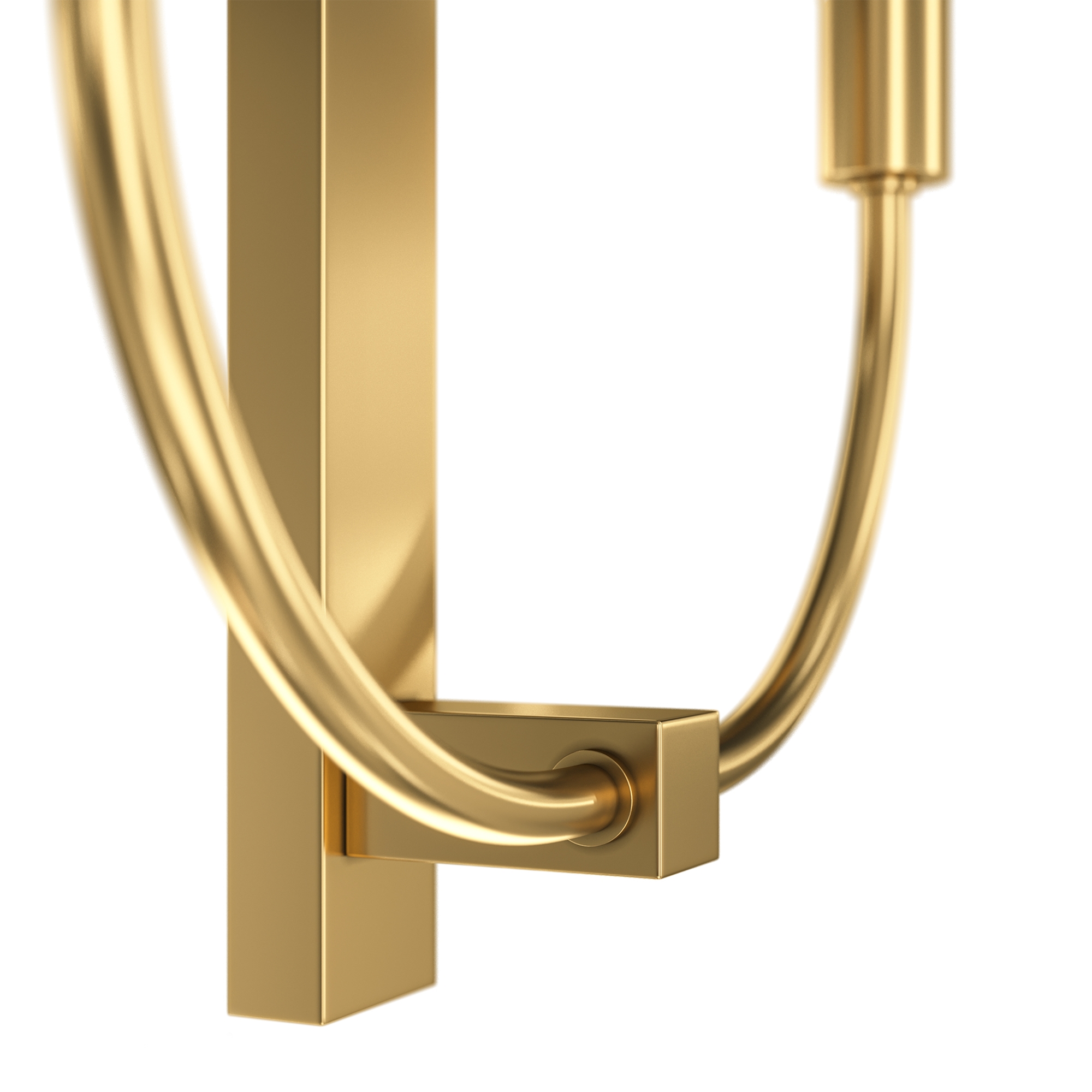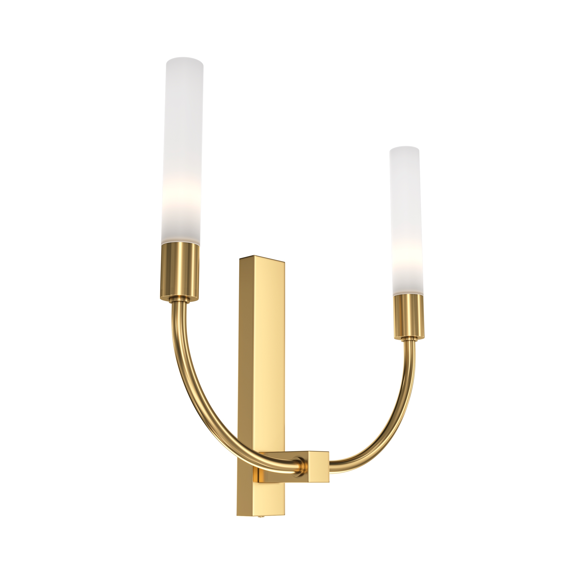 Металлическая арматура. Цвет — латунь. Плафоны-цилиндры — матовое стекло. Трендовый арочный силуэт. В качестве источников света используются лампы с цоколем G9.