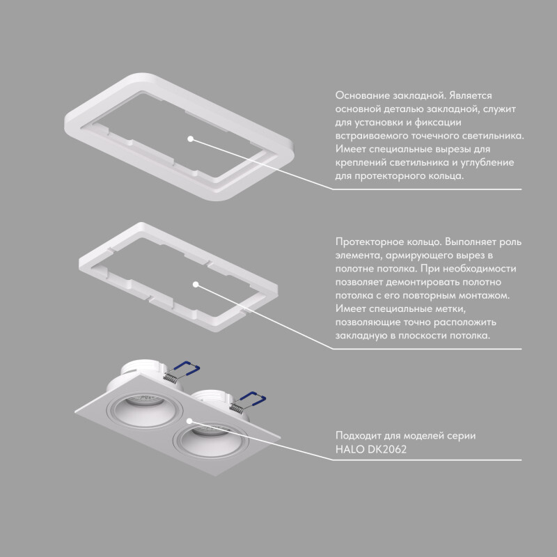 Закладная панель SCB для светильников DK2062. Специально изготовлена для монтажа светильников указанной серии с учетом их формы и конструктивных особенностей. Срок гарантии 3 года.