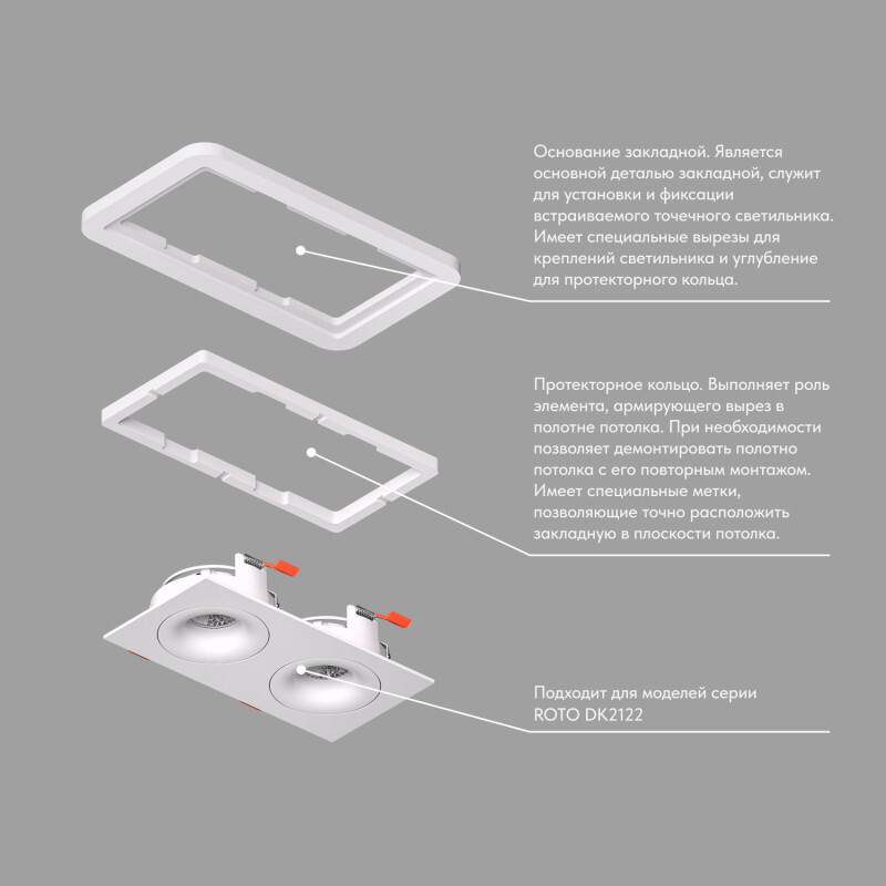 Закладная панель SCB для светильников DK2122. Специально изготовлена для монтажа светильников указанной серии с учетом их формы и конструктивных особенностей. Срок гарантии 3 года.