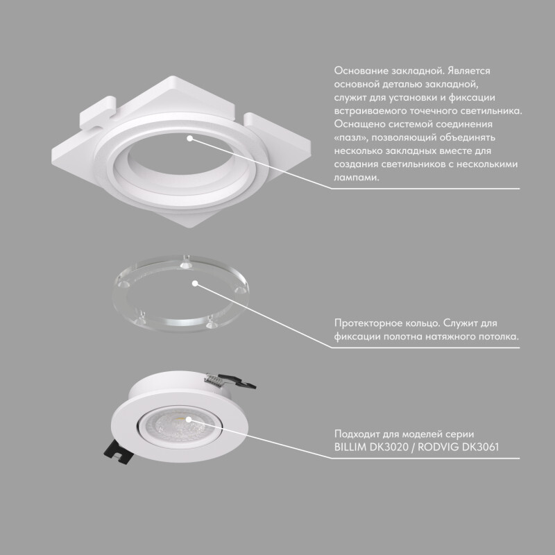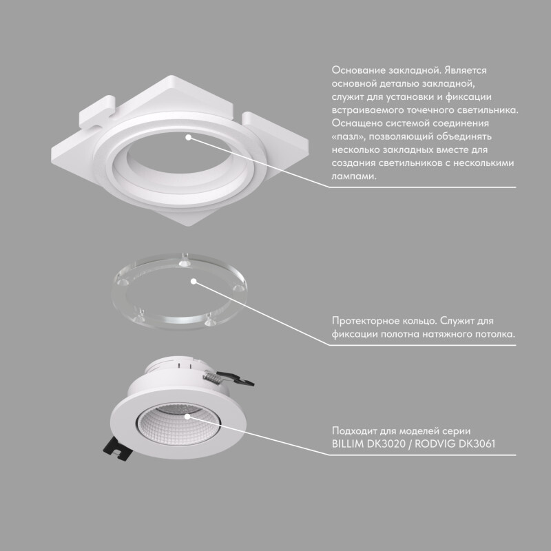 Закладная панель SCB для светильников DK3020 и DK3061. Позволяет добиться эффекта \"невидимости\" плафона в натяжных потолках за счет утопленного расположения светильника. Срок гарантии 3 года.