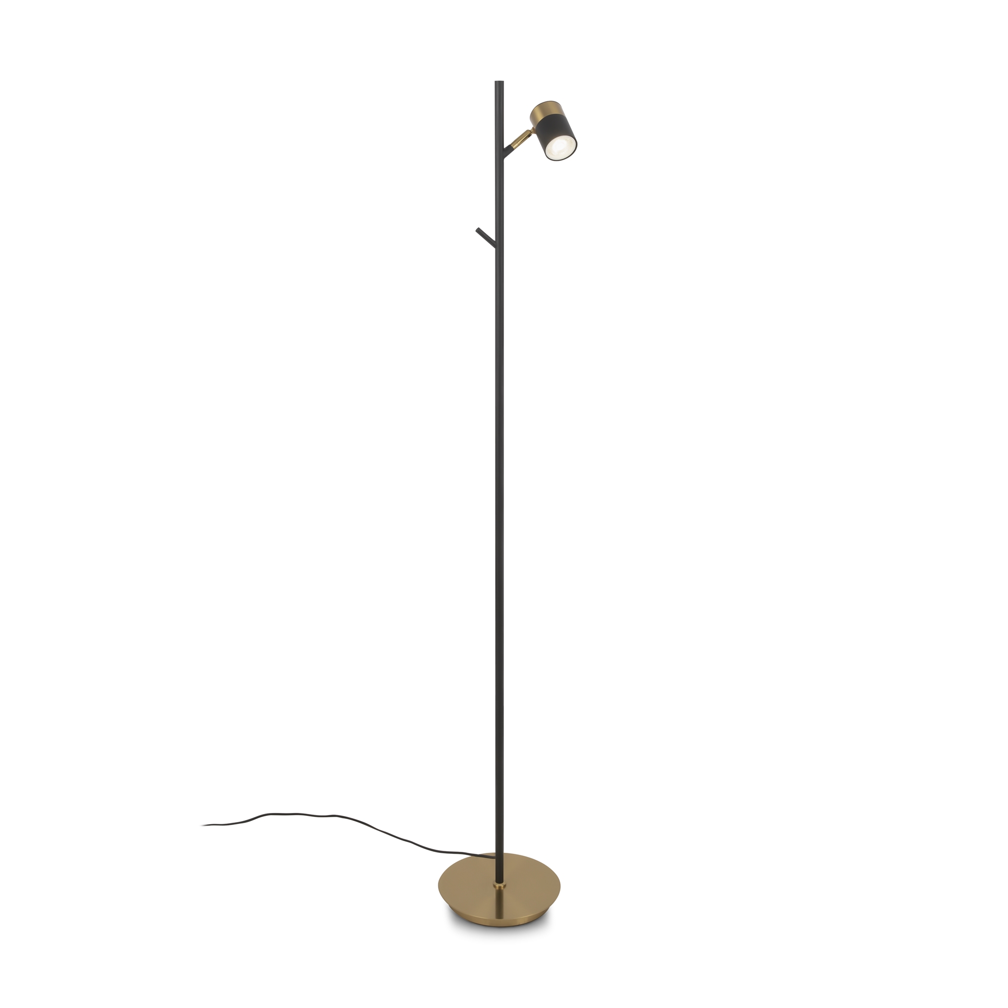Арматура и плафоны из металла. Черный цвет дополнен латунной окантовкой. Поворотные плафоны и арматура позволяют видоизменять композицию и регулировать направление светового потока. Источник света – лампа GU10.