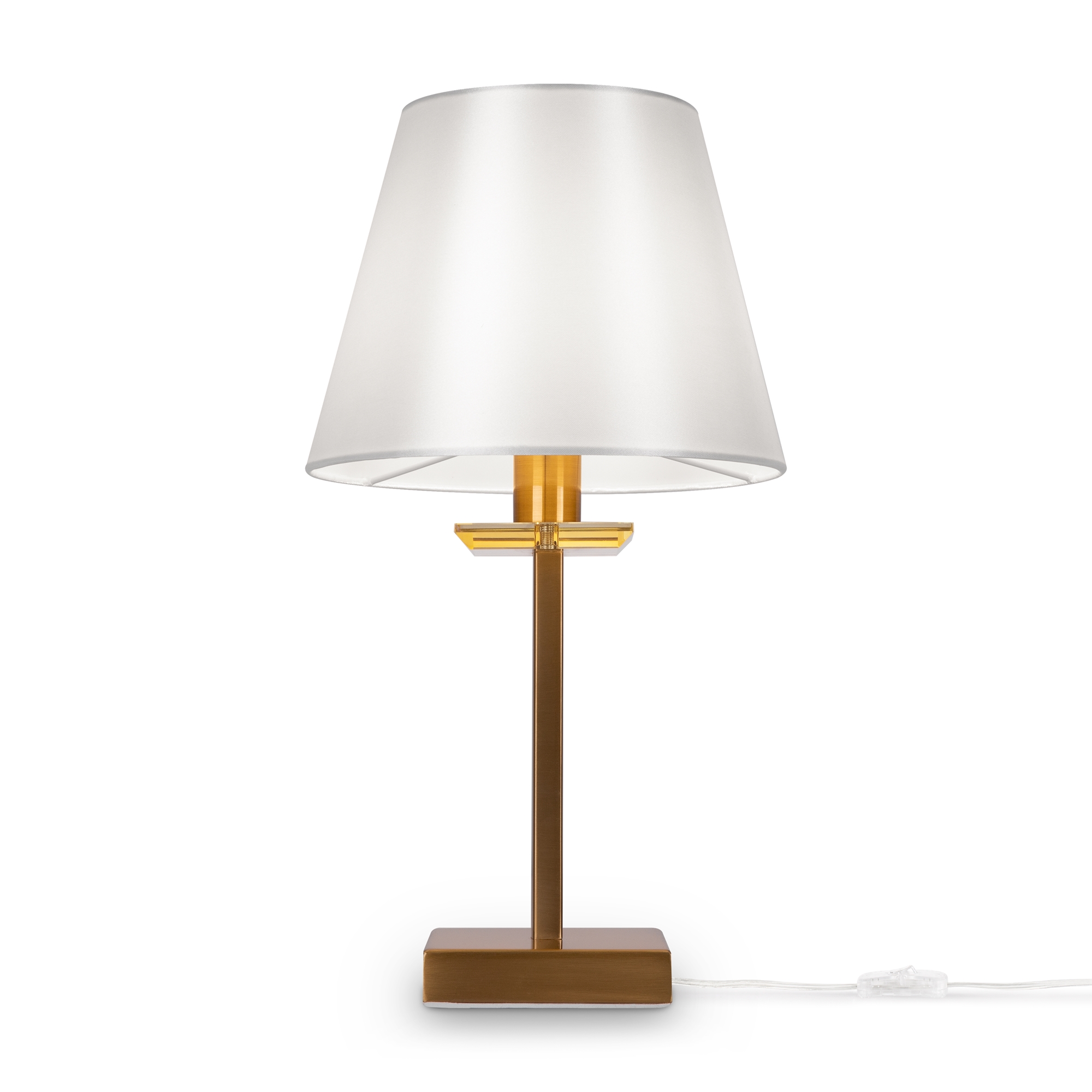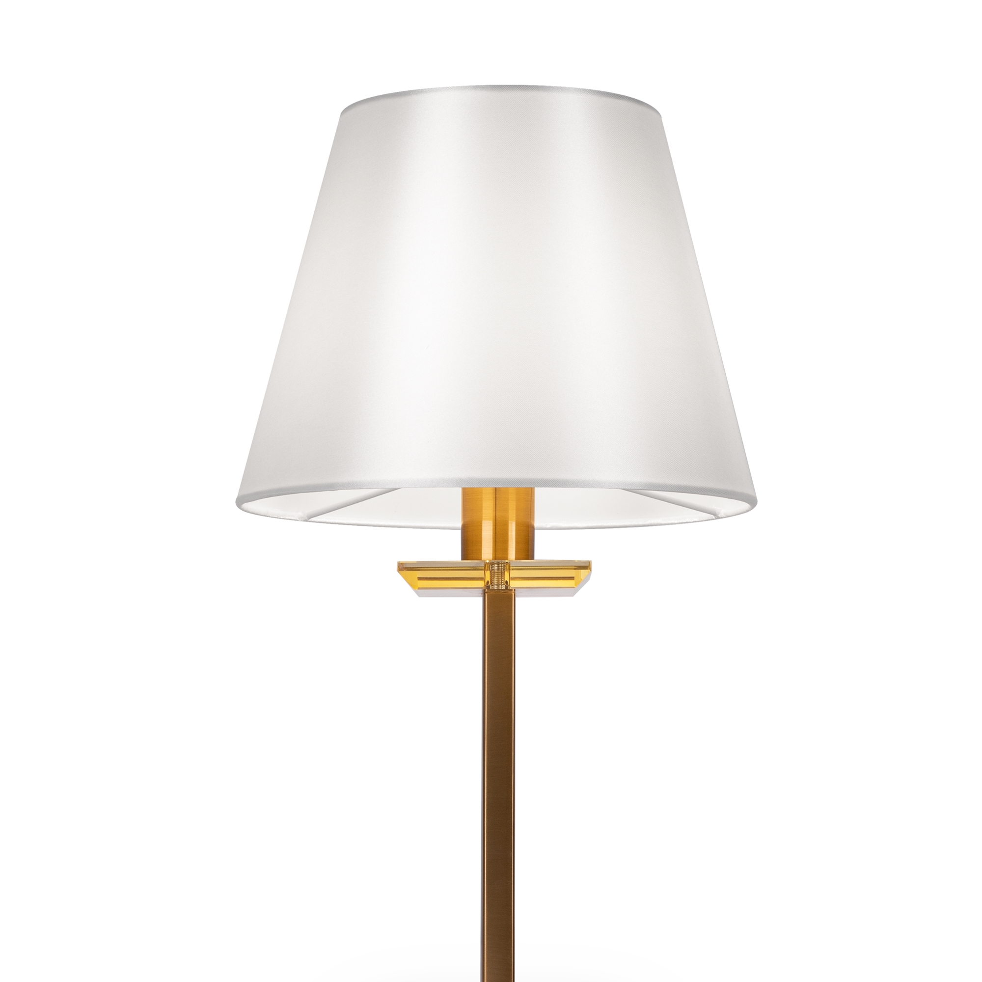 Металлическая арматура в двух оттенках: латунь и никель. Классическая форма плафона в виде свечи. Торшер и настольная лампа имеют тканевые абажуры. Белые – для арматуры цвета никель, оттенка кремовый шампань – для латунной. Декор – прозрачные хрустальные подвесы каплевидной формы. Торшер с цоколем Е27, лампа, бра и люстры – Е14.
