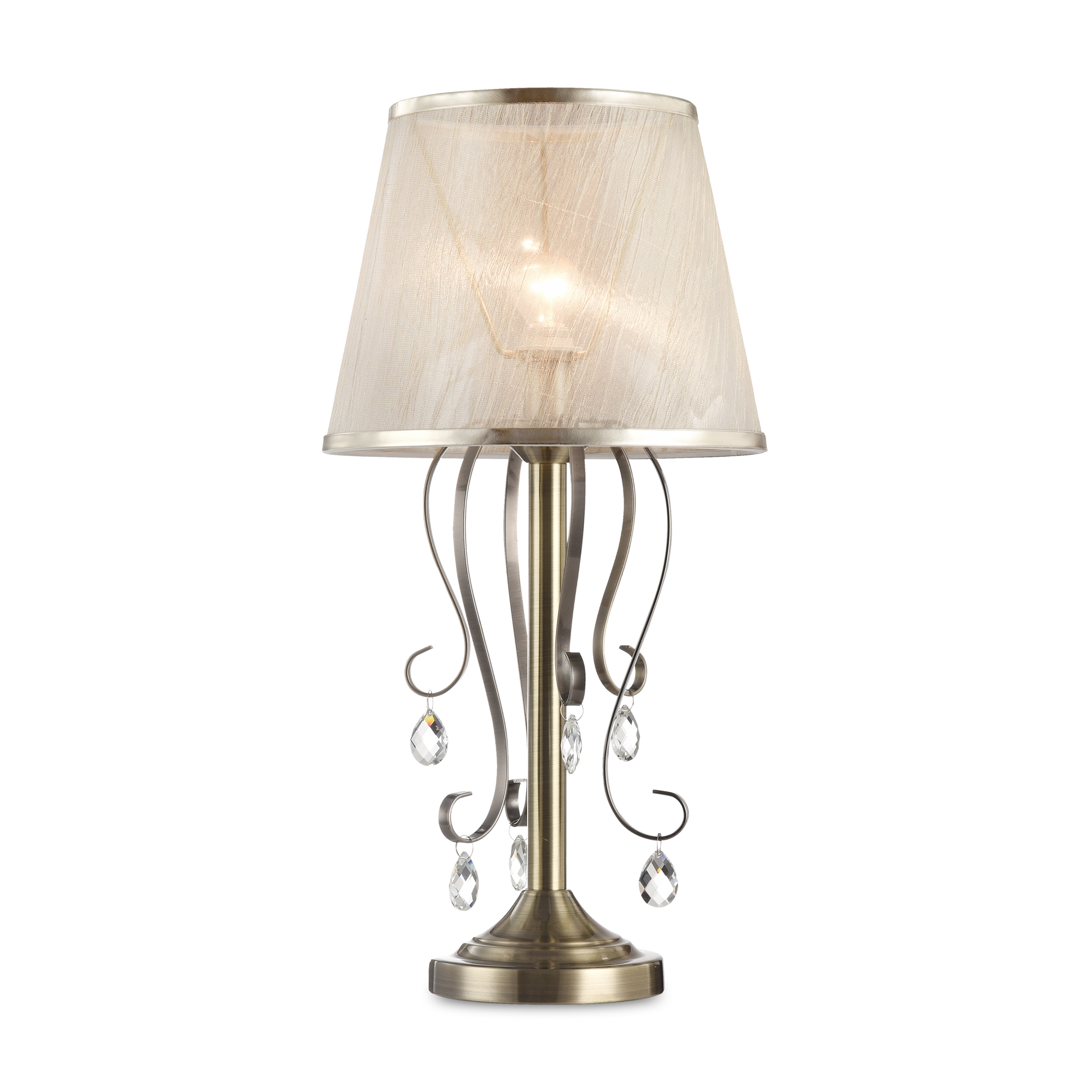 Светильники серии Simone выполнены в классическом стиле. Арматура цвета «античное серебро», абажуры из органзы на ПВХ. Люстры подходят для помещений с невысокими потолками благодаря конструкции «2 в 1». Дизайн изделий дополнен декоративными подвесками.