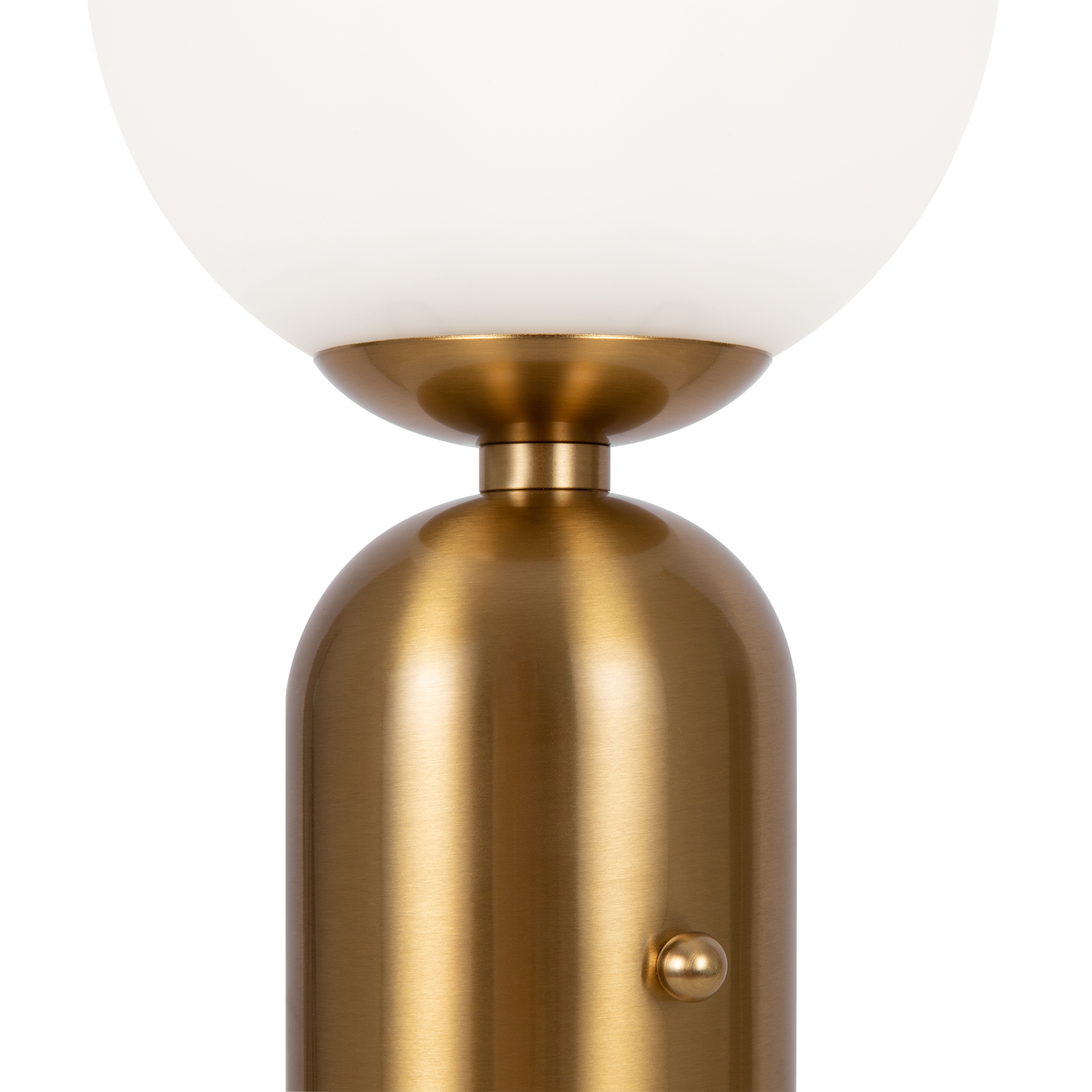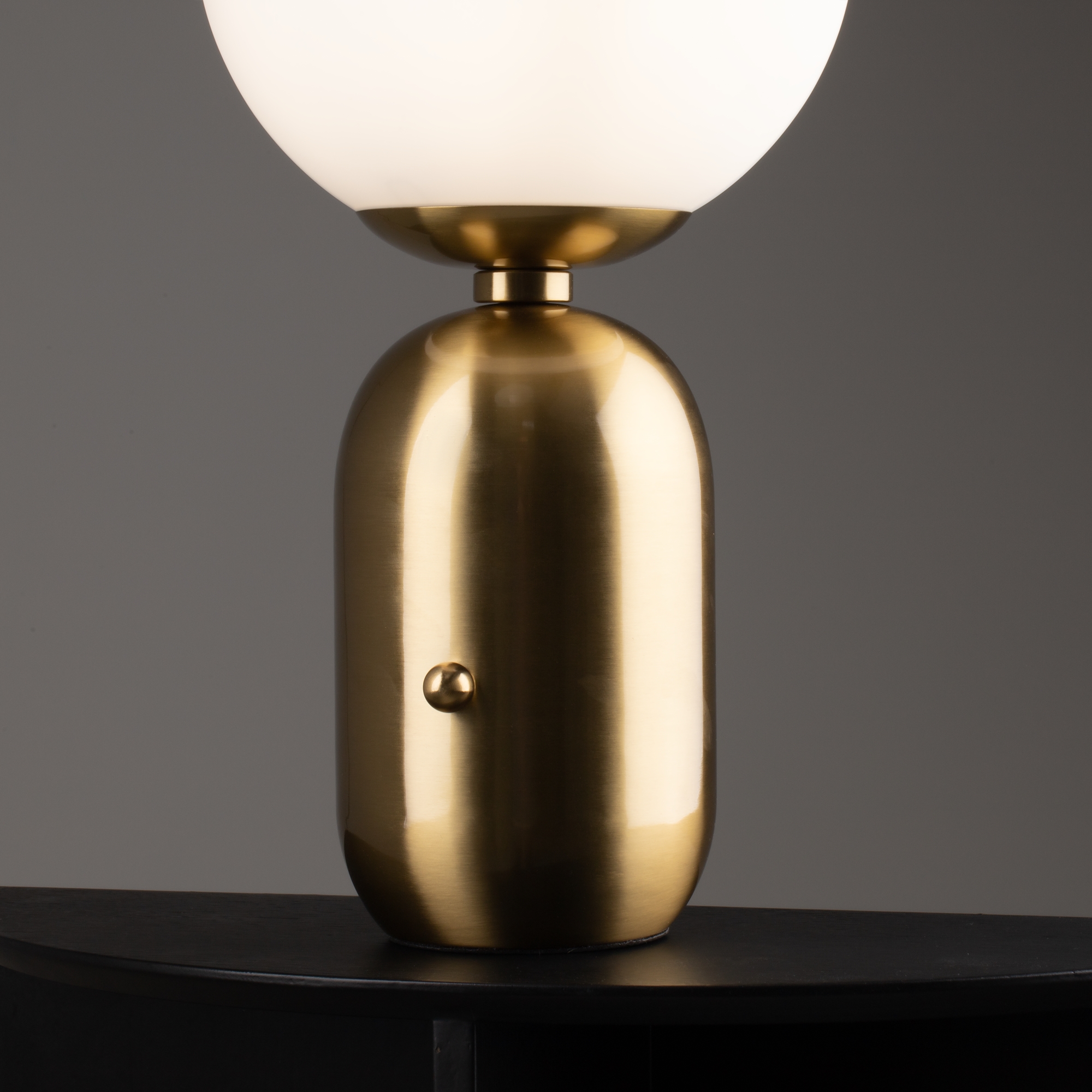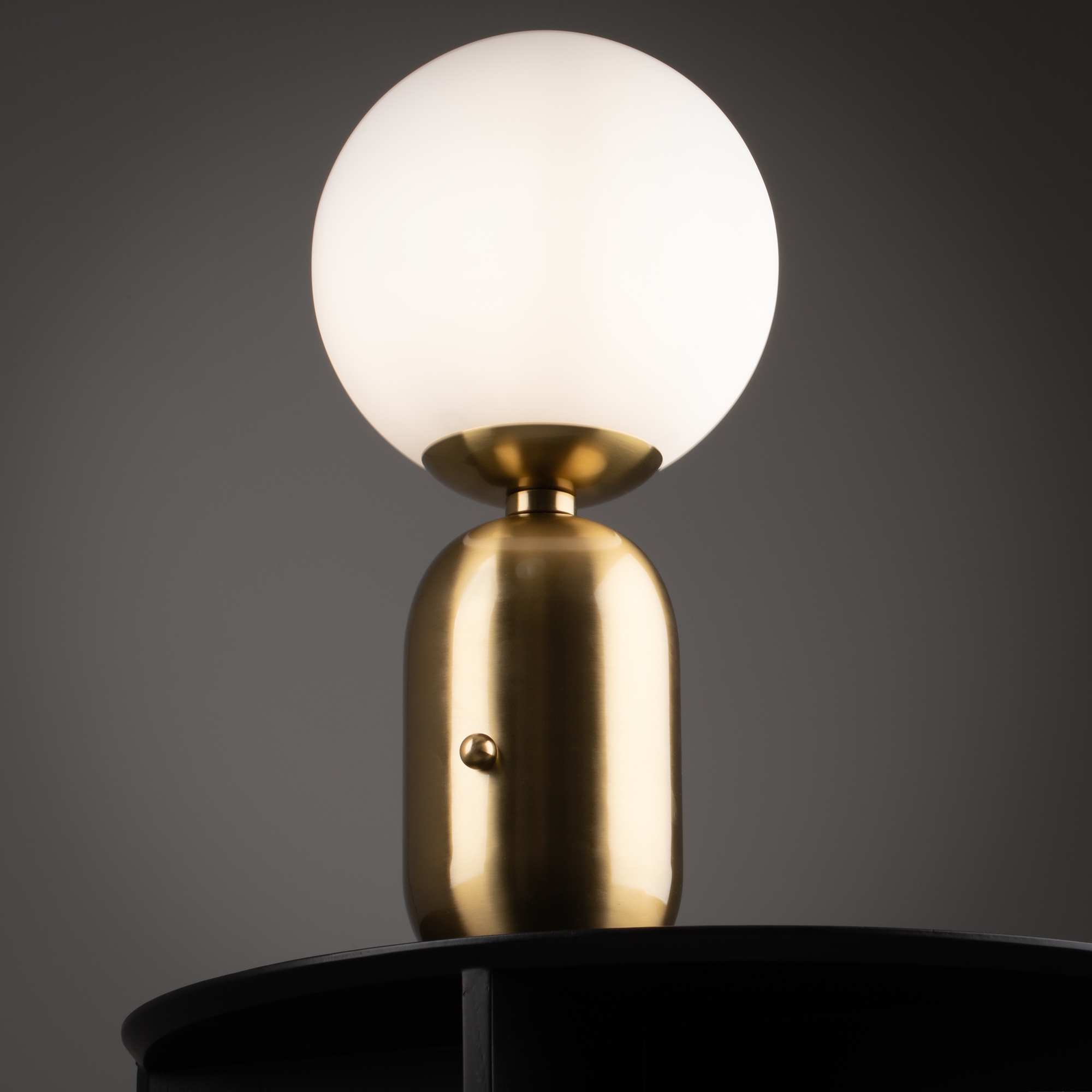 Материал арматуры — металл, цвета — латунь, черный с рисунком под мрамор. Функция Touch позволяет включать и выключать свет. Источник света — лампа с цоколем E14.