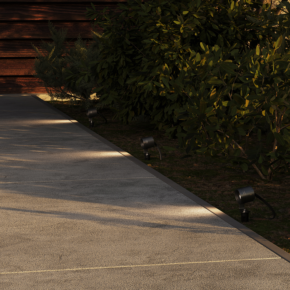 Материал арматуры - алюминий, цвет - графит, черный и белый. Источник света ландшафтной модели - LED (3000К), мощность 3Вт, высокая степень защиты от пыли и влаги IP65, высокий индекс цветопередачи >97. Источник света настенных моделей - лампа с цоколем GU10, мощность 10Вт, повышенная степень защиты от пыли и влаги IP54