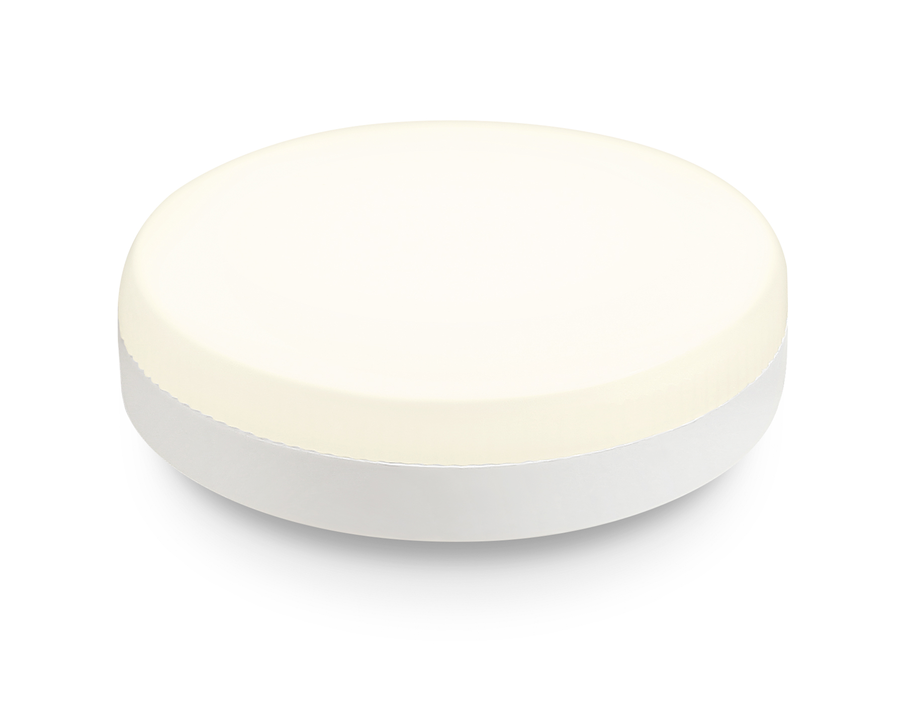 Светодиодная лампа GX53, цоколь GX53, мощность 15W, IC драйвер (защищает лампу от перепадов напряжения), класс энергоэффективности А, рассеиватель матовый, теплое свечение 2700K, форма "Таблетка", 74*28