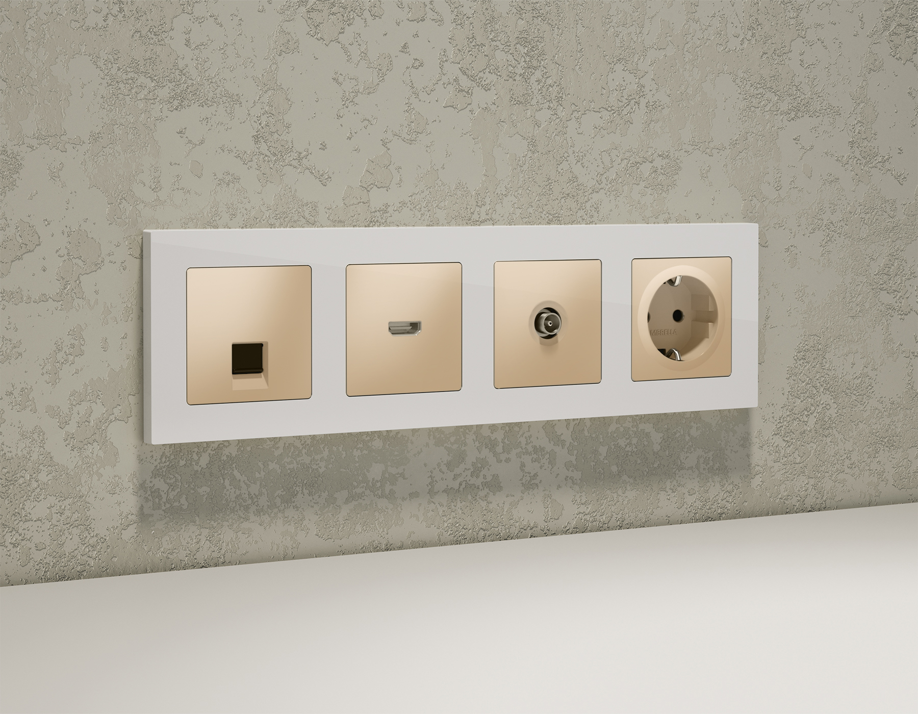 Комплект механизма компьютерной розетки RJ-45 (8P8C) CAT6A экранированной с автоматической защитной шторкой ALFA MA612005 Шампань QUANT
