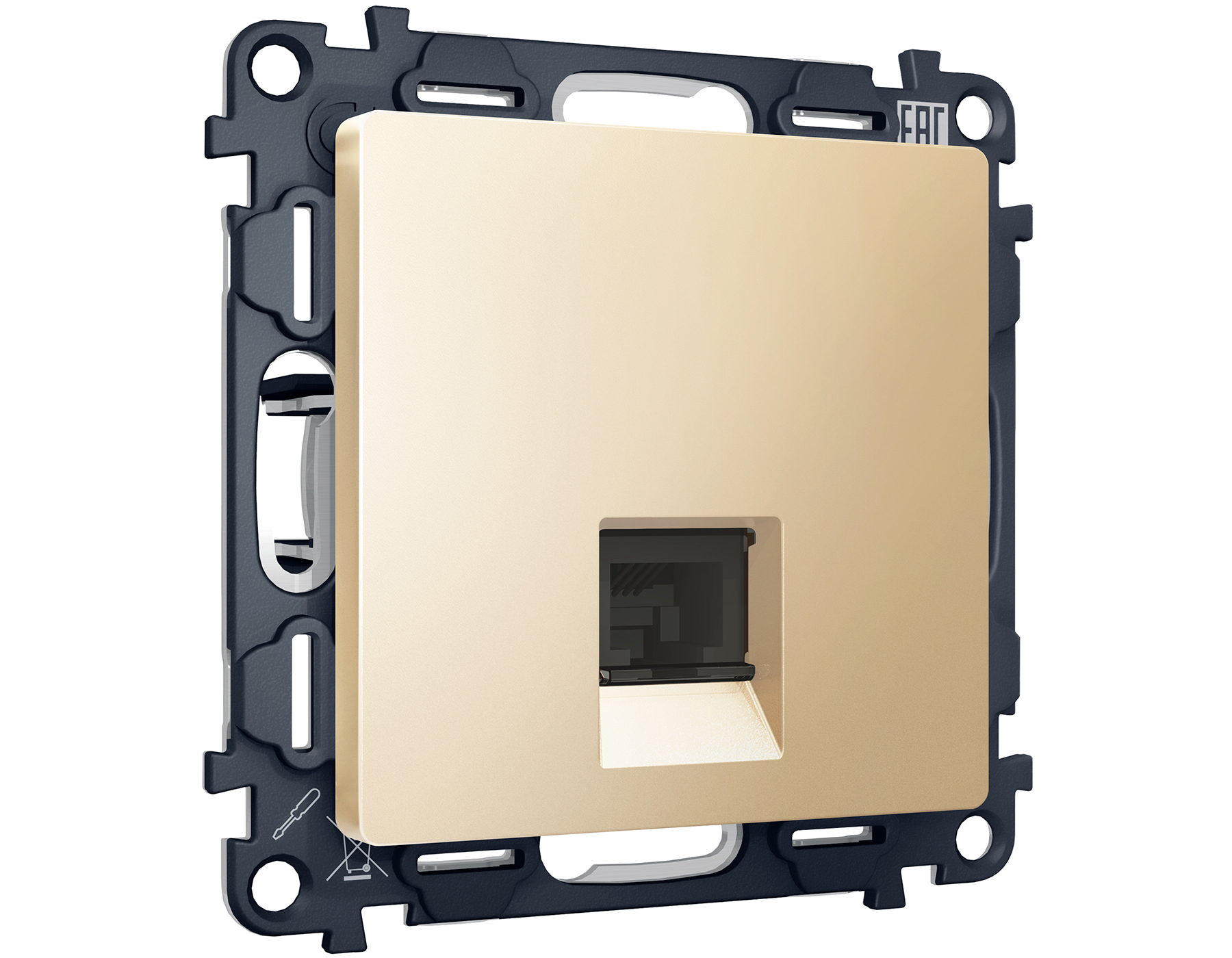 Комплект механизма компьютерной розетки ALFA MA612010 Шампань RJ-45(8P8C) CAT6 с защитной шторкой QUANT