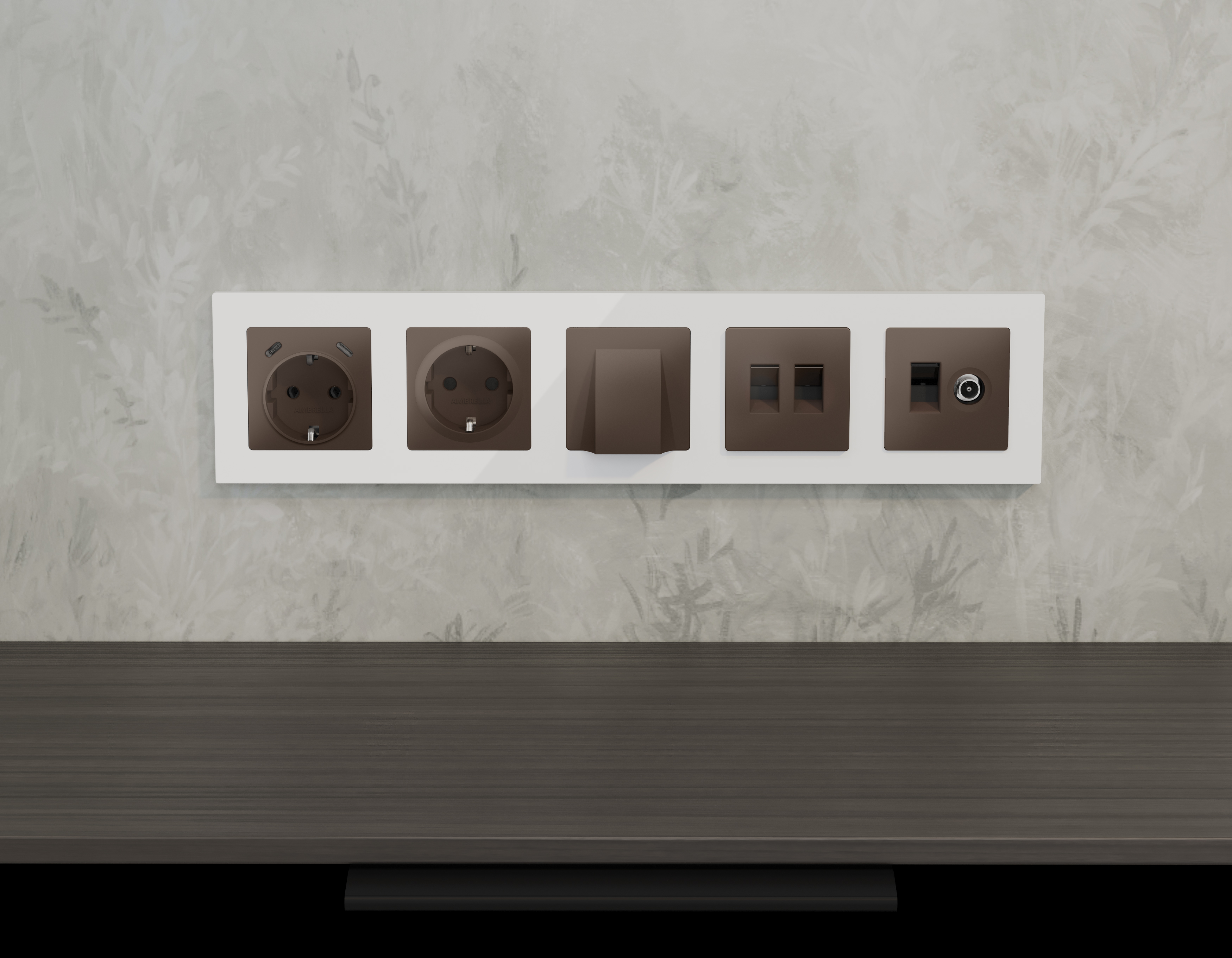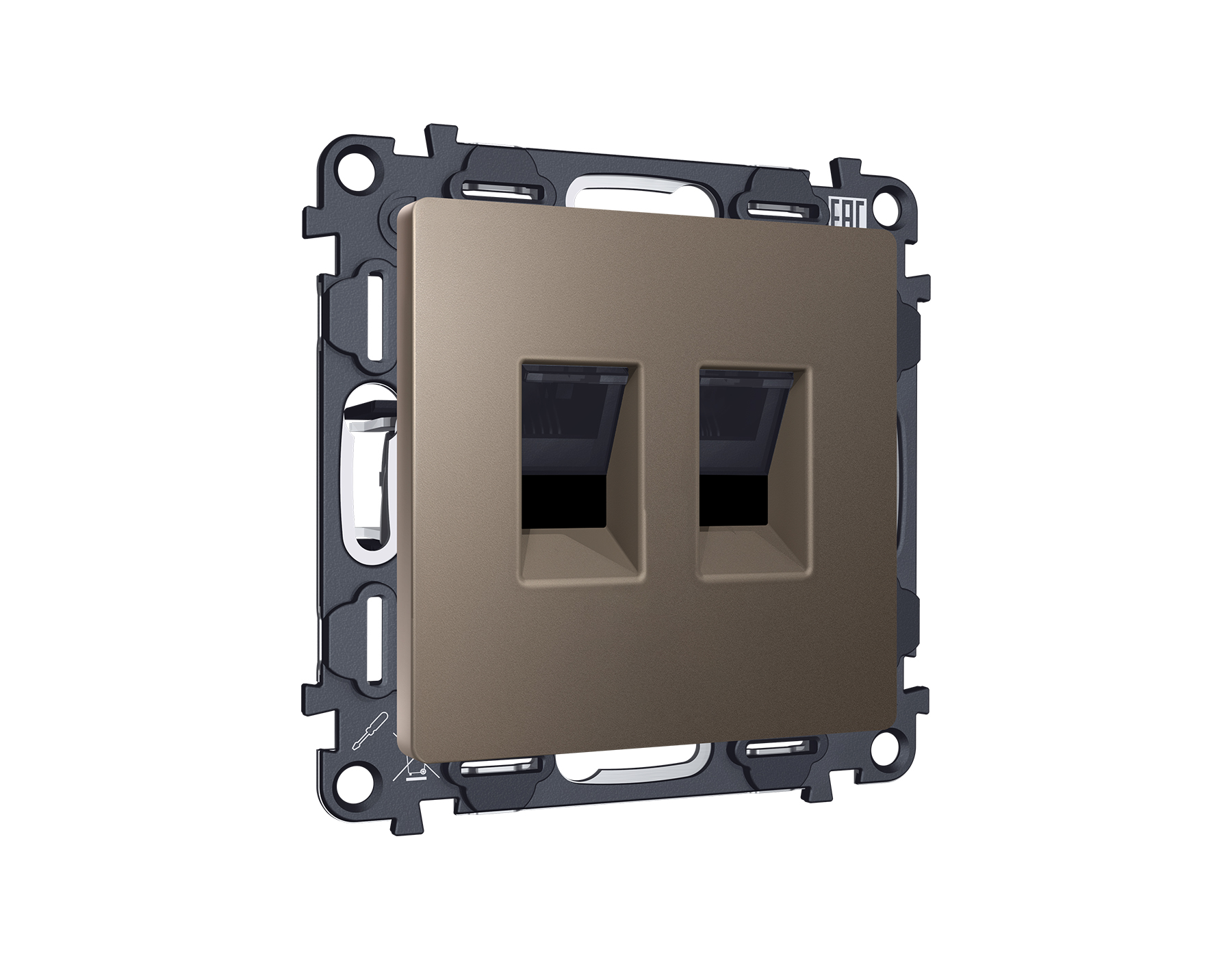 Комплект механизма компьютерной двойной розетки RJ-45 (8P8C) CAT6 с автоматической защитной шторкой ALFA MA642110 Темная бронза матовый QUANT