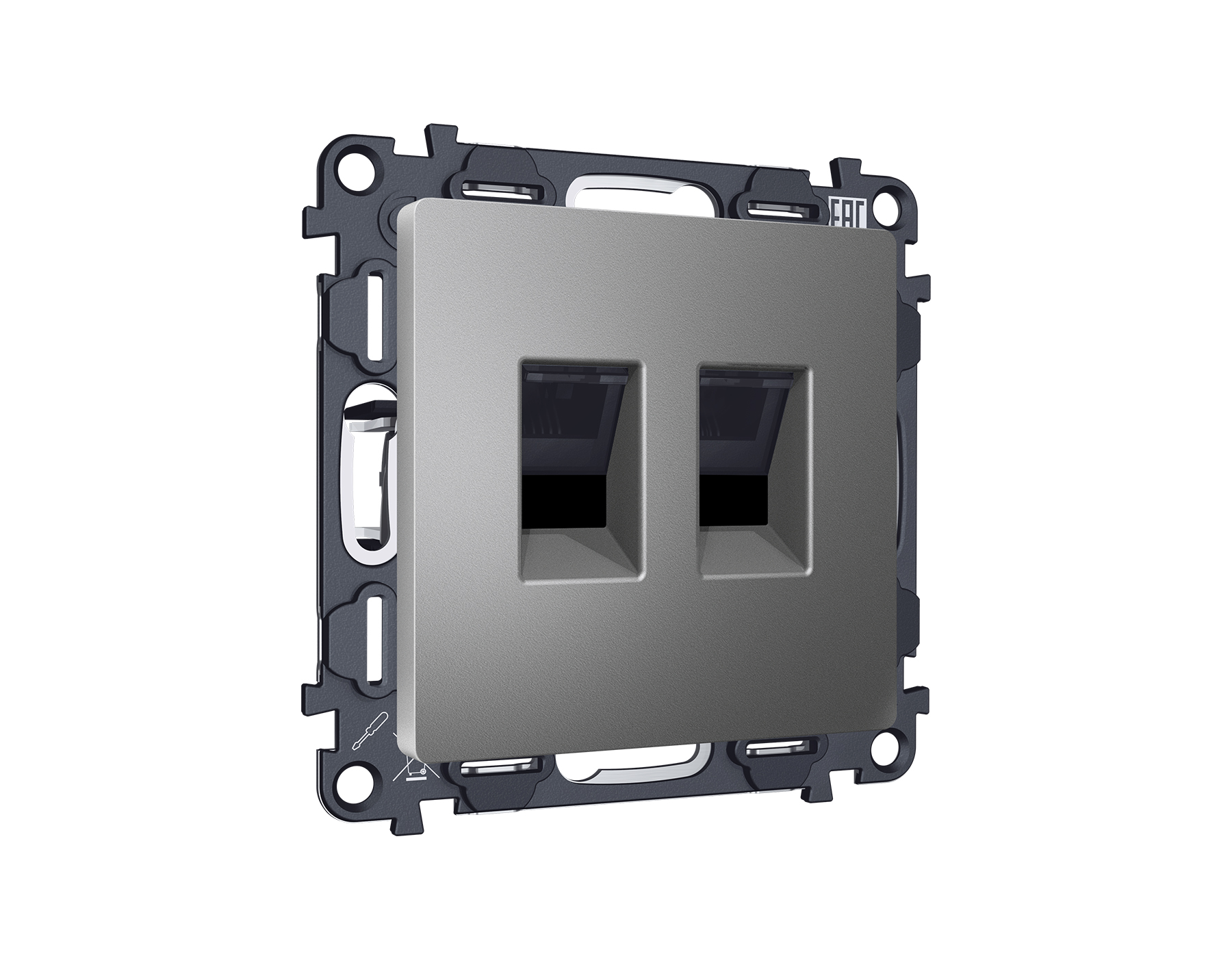Комплект механизма компьютерной двойной розетки RJ-45 (8P8C) CAT6 с автоматической защитной шторкой ALFA MA662110 Антрацит серый QUANT