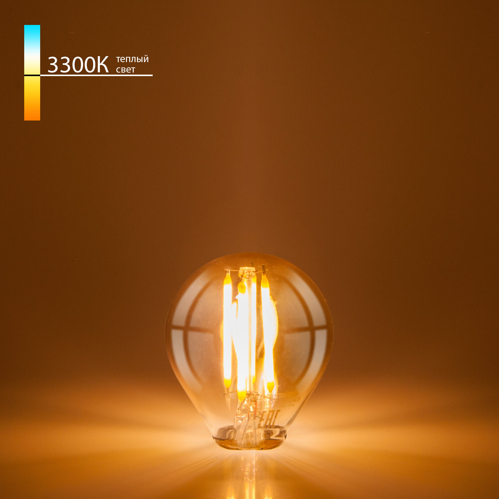 Филаментная светодиодная лампа G45 8 Вт 3300K E27. Это вид светодиодных ламп, которые внешне максимально приближены к лампам накаливания. Они имеют полностью прозрачную стеклянную колбу и цоколь, а внутри расположены светодиоды вместо нити накала.