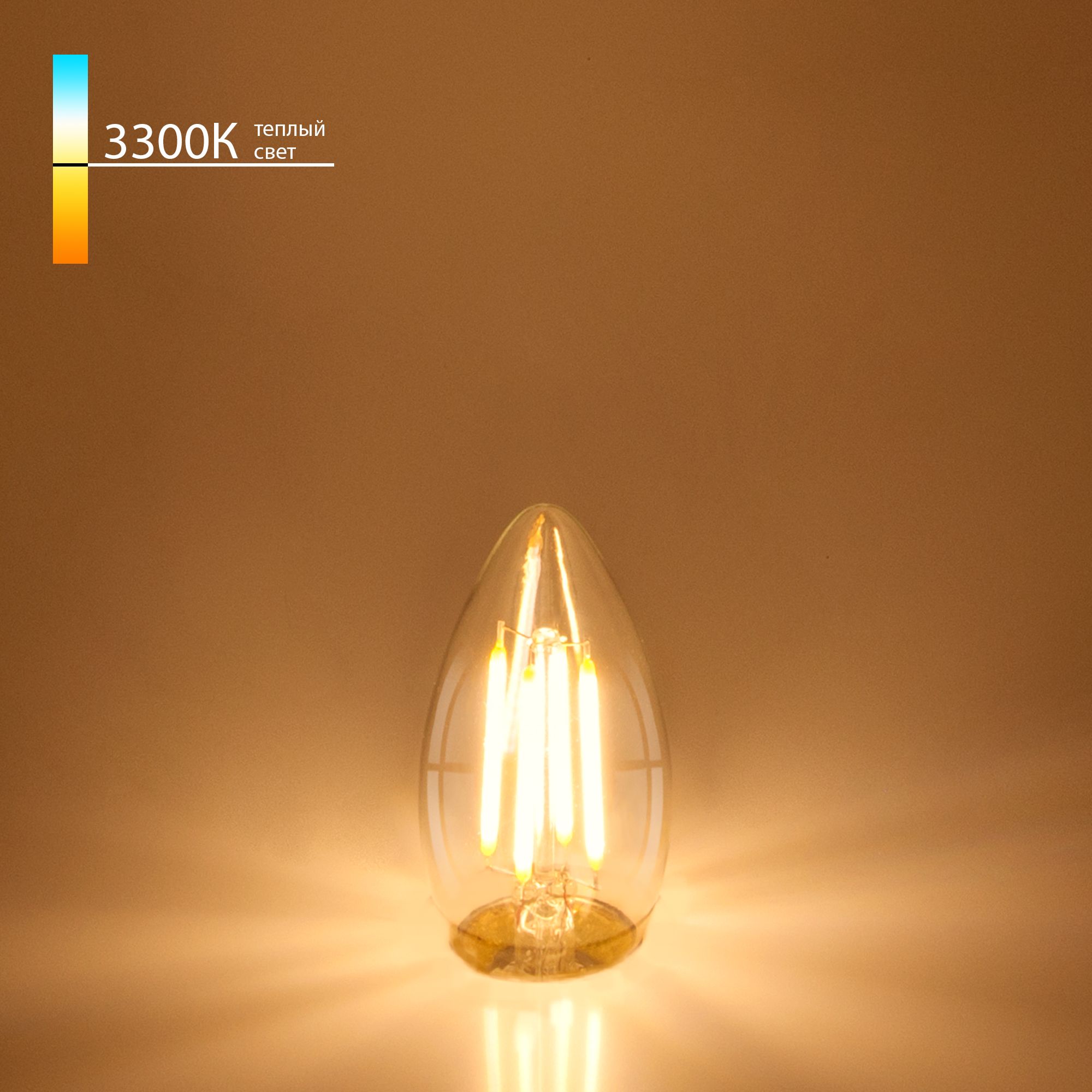Филаментная светодиодная лампа "Свеча" C35 9W 3300K E27.Это вид светодиодных ламп, которые внешне максимально приближены к лампам накаливания. Они имеют полностью прозрачную стеклянную колбу и цоколь, а внутри расположены светодиоды вместо нити накала.