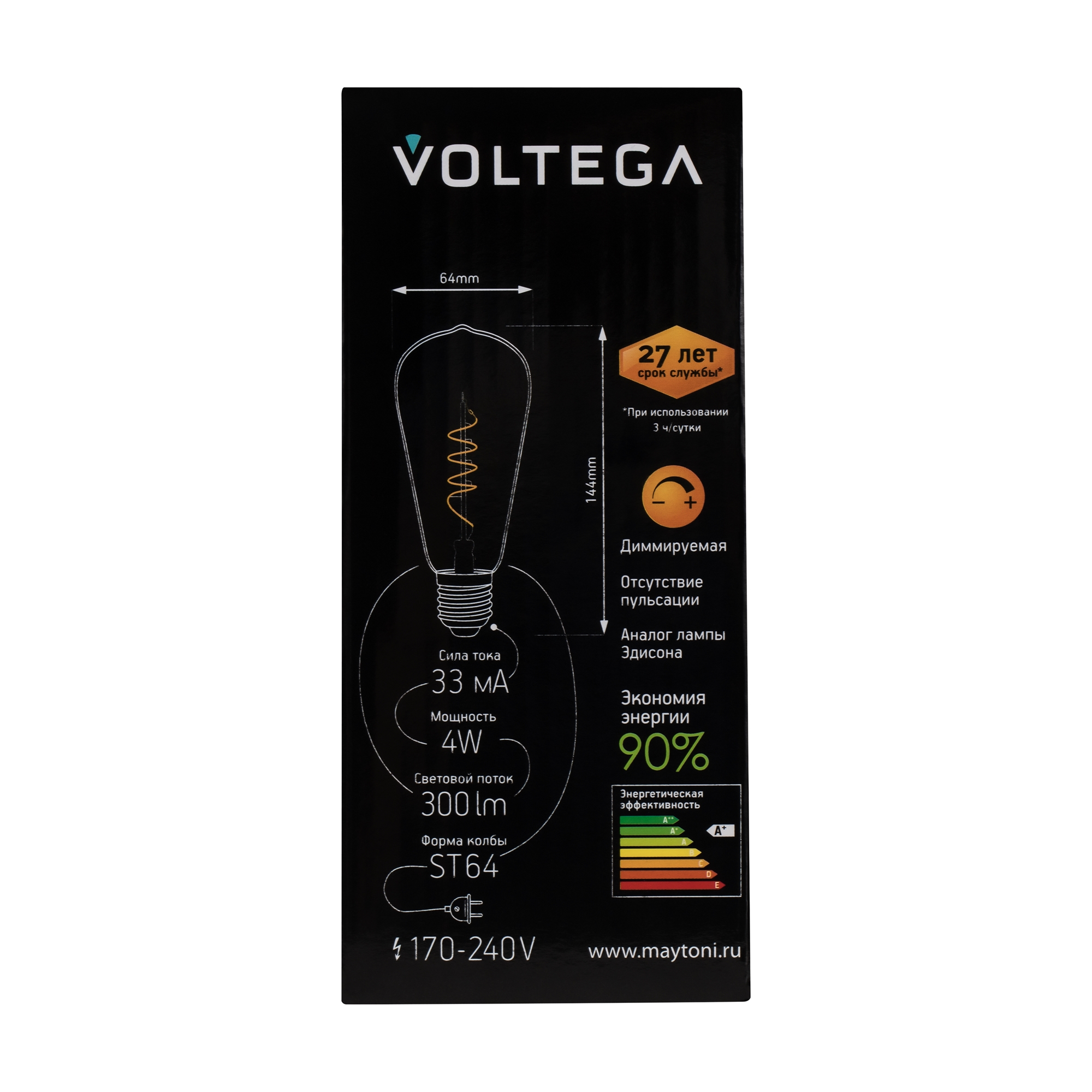 Лампа светодиодная диммируемая Трубка лофт GOLD. ST64 Ваттность 4W Цоколь Е27 Цветовая температура 2000К