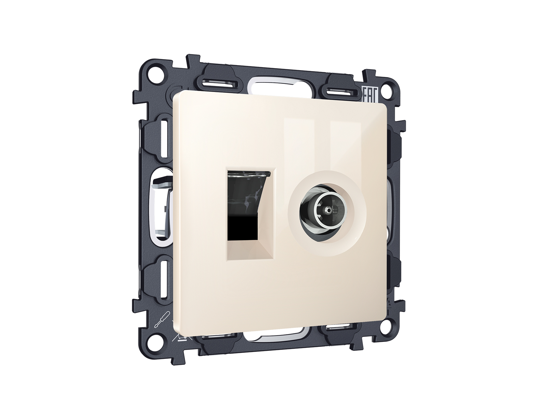 Комплект механизма розетки компьютерной + TV оконечной RJ-45 (8P8C) CAT6/50-870 MHz 1dB с автоматической защитной шторкой ALFA MA312510 Бежевый глянец