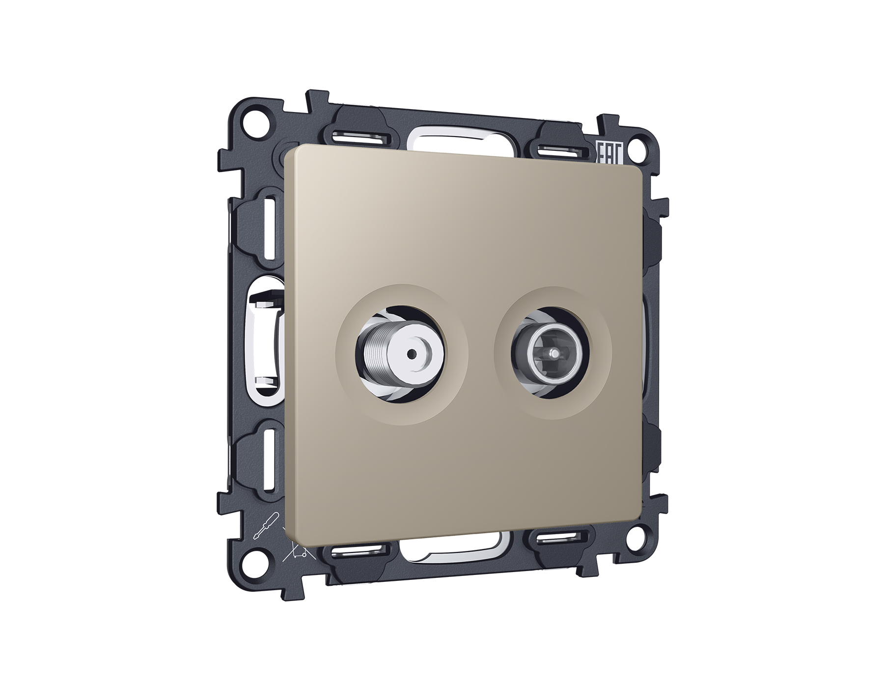 Комплект механизма розетки TV оконечной + SAT 5-862MHz 3.5dB/950-2150MHz 3.5dB ALFA MA373310 Серо-бежевый матовый QUANT