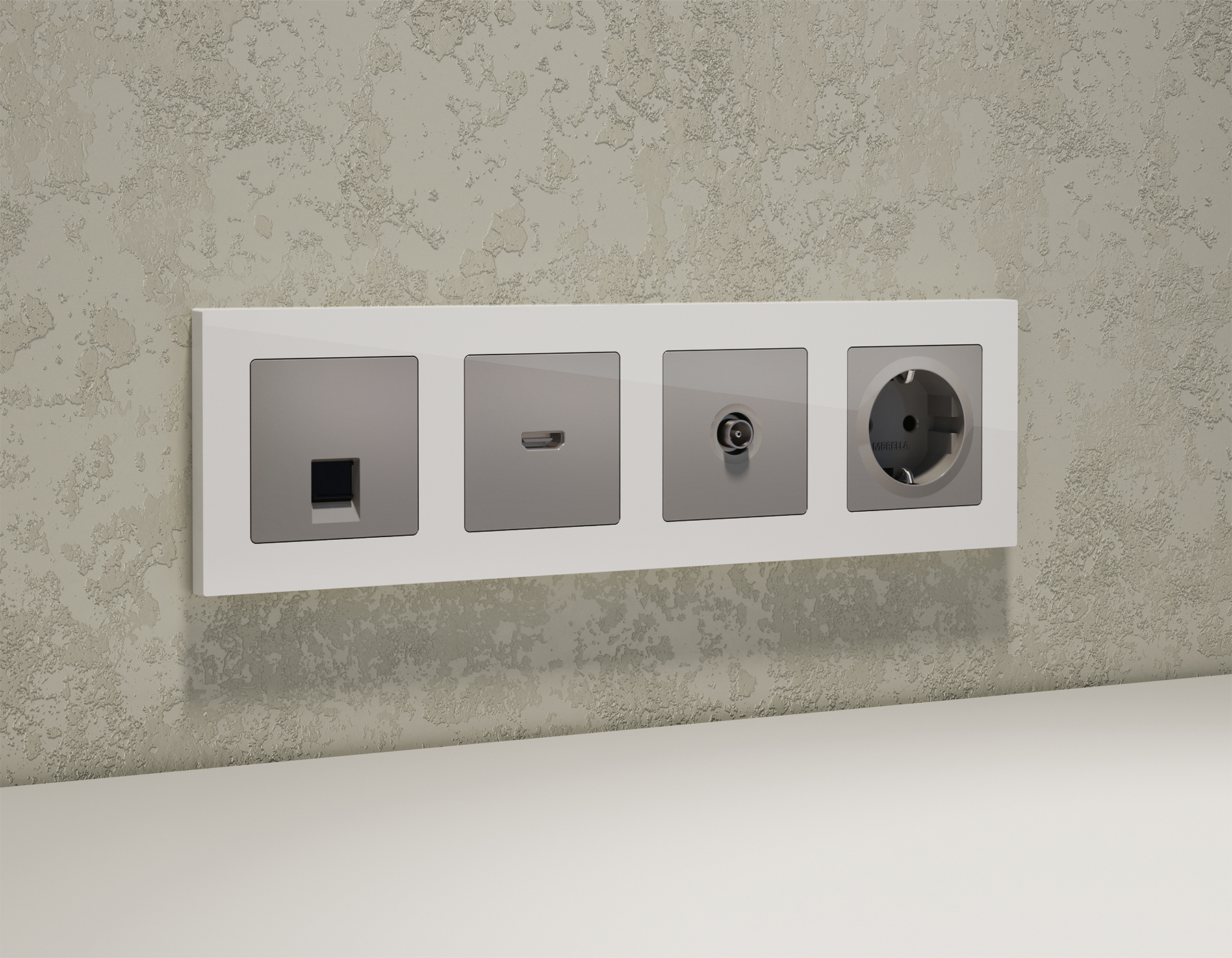 Многогранный ассортимент Ambrella Volt включает в себя механизмы, лицевые панели и рамки, а также комплекты, доступные в различных цветовых решениях. Продукция представлена в модульном исполнении, что позволяет гибко настраивать внешнийвид и функциональность. Вам будет легко заменить лицевую панель, рамку или механизм, найдя идеальное сочетание цветов.