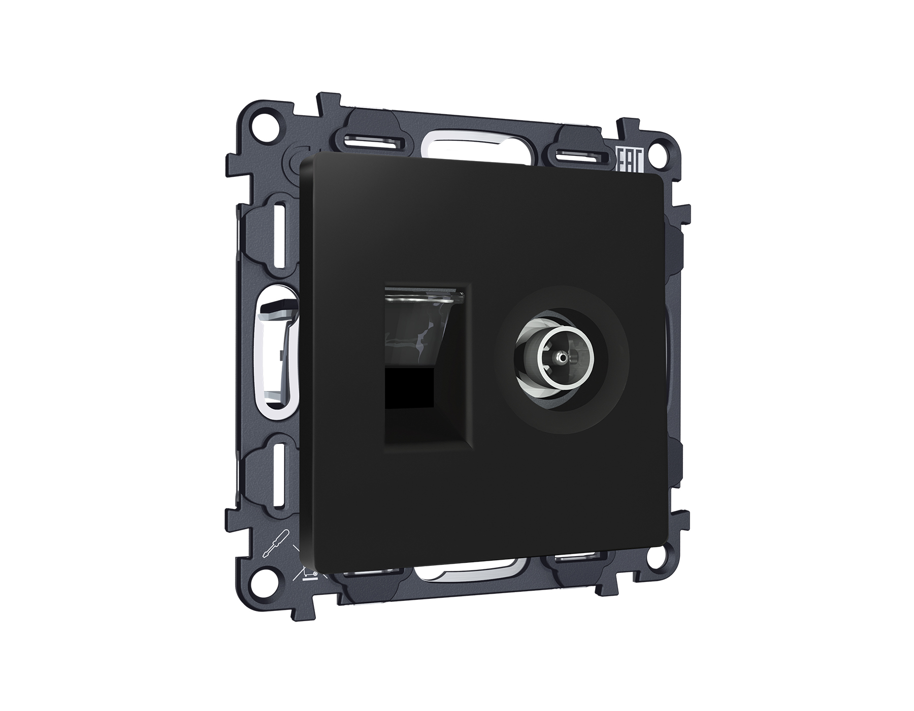 Комплект механизма розетки компьютерной + TV оконечной RJ-45 (8P8C) CAT6/50-870 MHz 1dB с автоматической защитной шторкой ALFA MA812510 Черный матовый