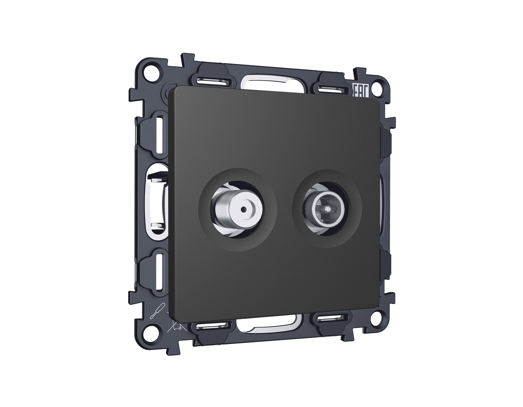 Комплект механизма розетки TV оконечной + SAT 5-862MHz 3.5dB/950-2150MHz 3.5dB ALFA MA913310 Графит мягкое касание QUANT