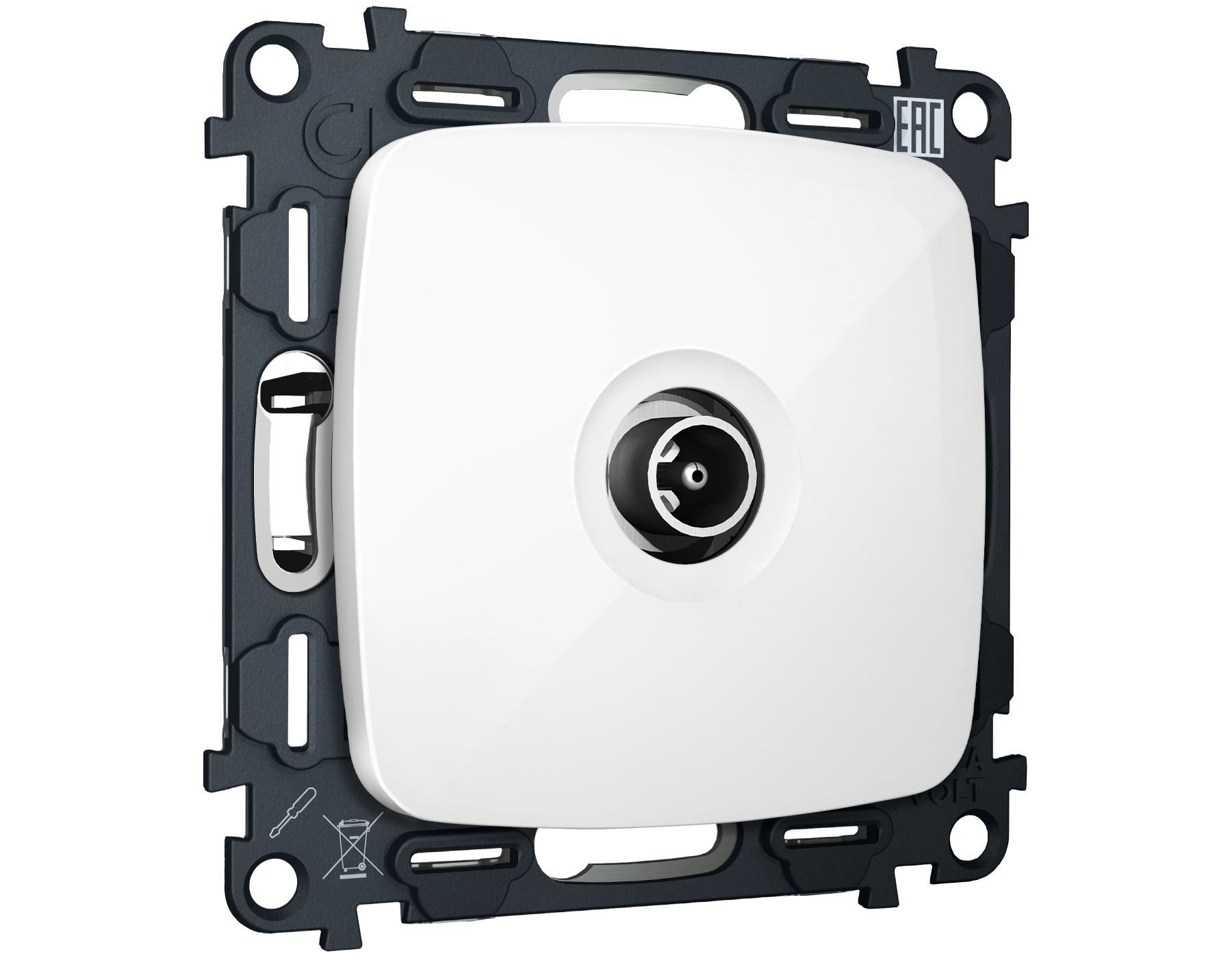 Комплект механизма TV розетки проходной OMEGA MO113030 Белый глянец 5-1000 MHz 4dB QUANT