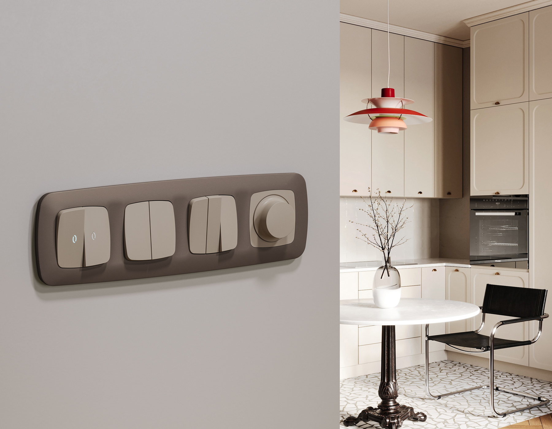 Многогранный ассортимент Ambrella Volt включает в себя механизмы, лицевые панели и рамки, а также комплекты, доступные в различных цветовых решениях. Продукция представлена в модульном исполнении, что позволяет гибко настраивать внешний вид и функциональность. Вам будет легко заменить лицевую панель, рамку или механизм, найдя идеальное сочетание цветов.