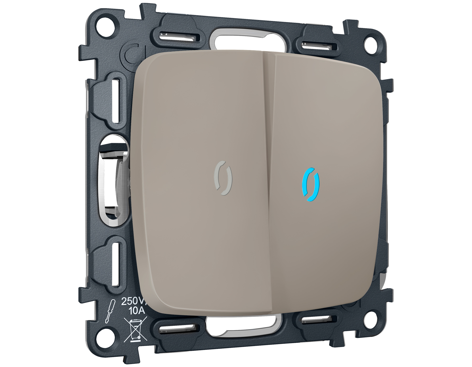 Многогранный ассортимент Ambrella Volt включает в себя механизмы, лицевые панели и рамки, а также комплекты, доступные в различных цветовых решениях. Продукция представлена в модульном исполнении, что позволяет гибко настраивать внешний вид и функциональность. Вам будет легко заменить лицевую панель, рамку или механизм, найдя идеальное сочетание цветов.