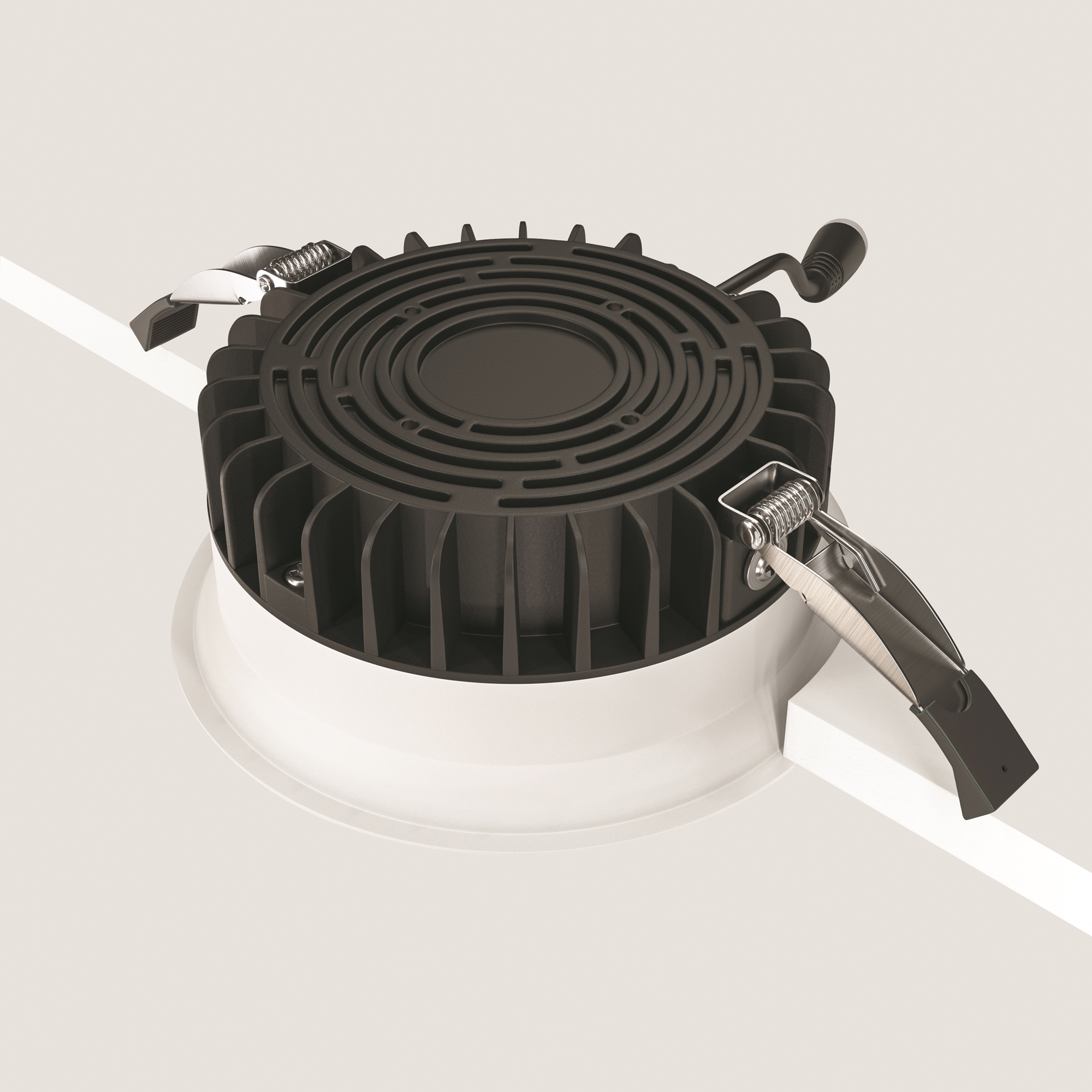 Материал арматуры - алюминий и пластик. Организация основного освещения в интерьере. Высокий коэффициент цветопередачи >90. Качественное отображение цветов. Утопленный матовый рассеиватель. Переключатель цветовой температуры. Повышенная степень пылевлагозащиты IP 44.