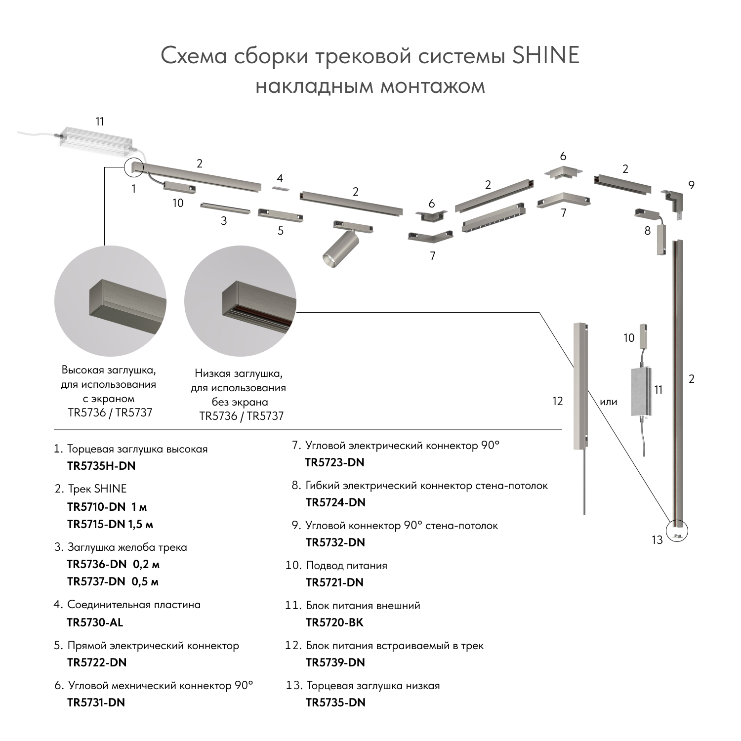 Электрический коннектор для трека SHINE BASE 90° стена-потолок передает напряжение между 2 треками, расположенными под произвольным углом Срок гарантии 3 года.