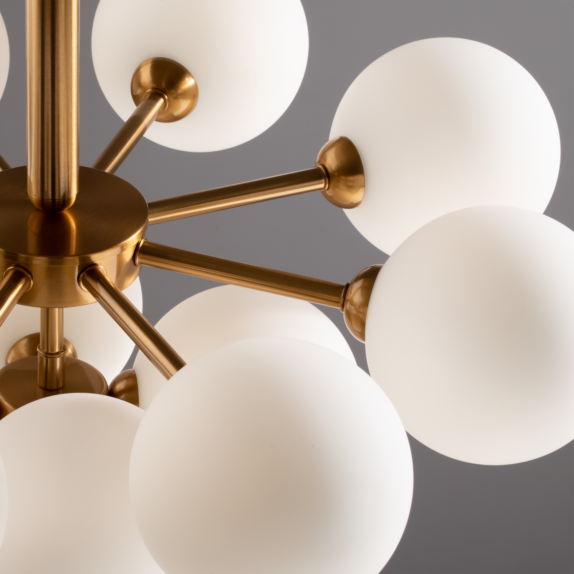 Арматура - металл, цвет - латунь. Стеклянные плафоны-сферы в двух оттенках белый матовый и дымчатый в настенно потолочной версии. Округлые и плавные линии - беспроигрышное сочетание для современных интерьеров. Настенные бра можно использовать как для общего на потолке так и для зонального настенного освещения Источник света - лампа с цоколем G9.