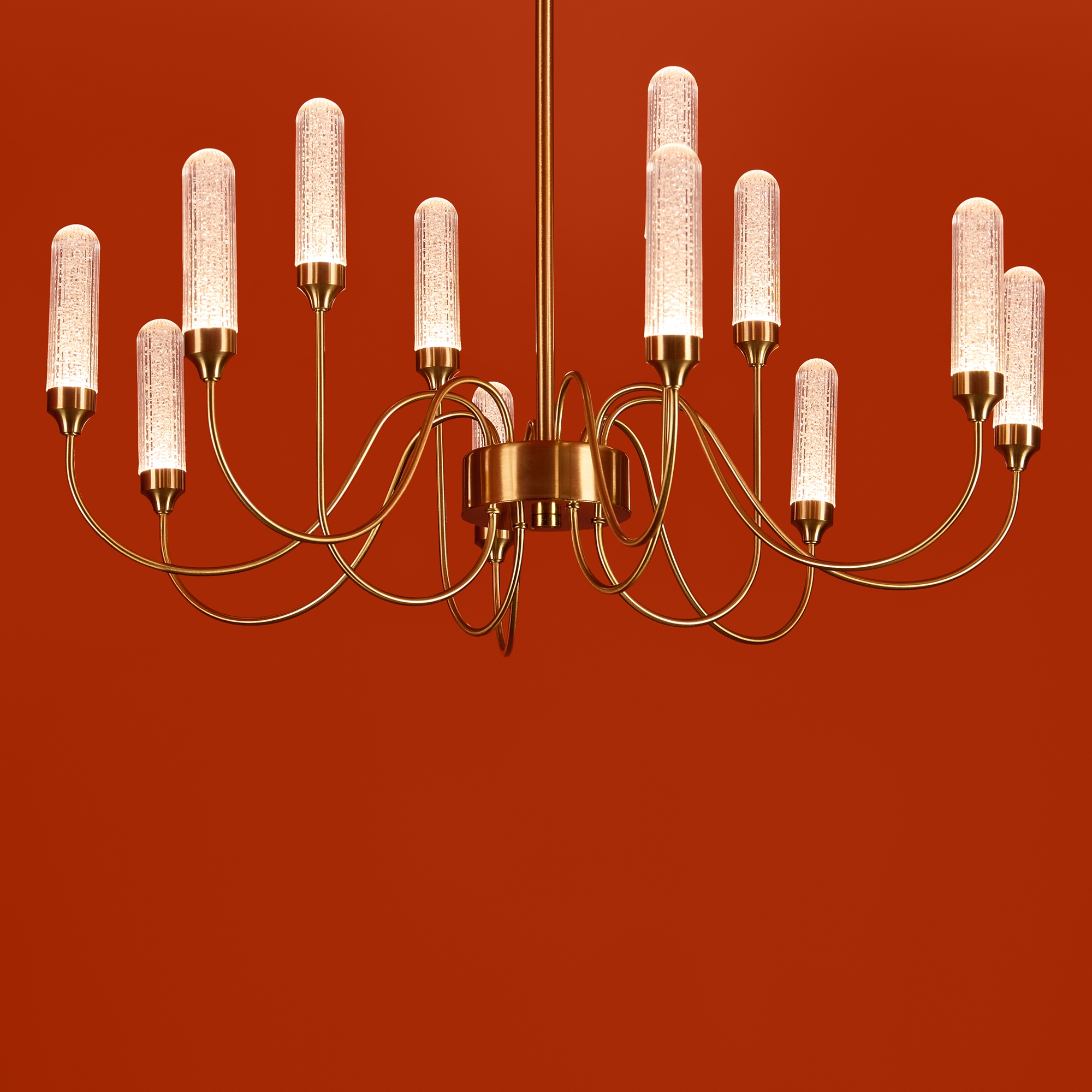 Арматура - металл в цвете латунь и никель. Основной акцент в дизайне люстр Alias сделан на акриловые плафоны, эффект пузырьков. Встроенный LED модуль 2700K. 2 дизайна подвесных светильников.