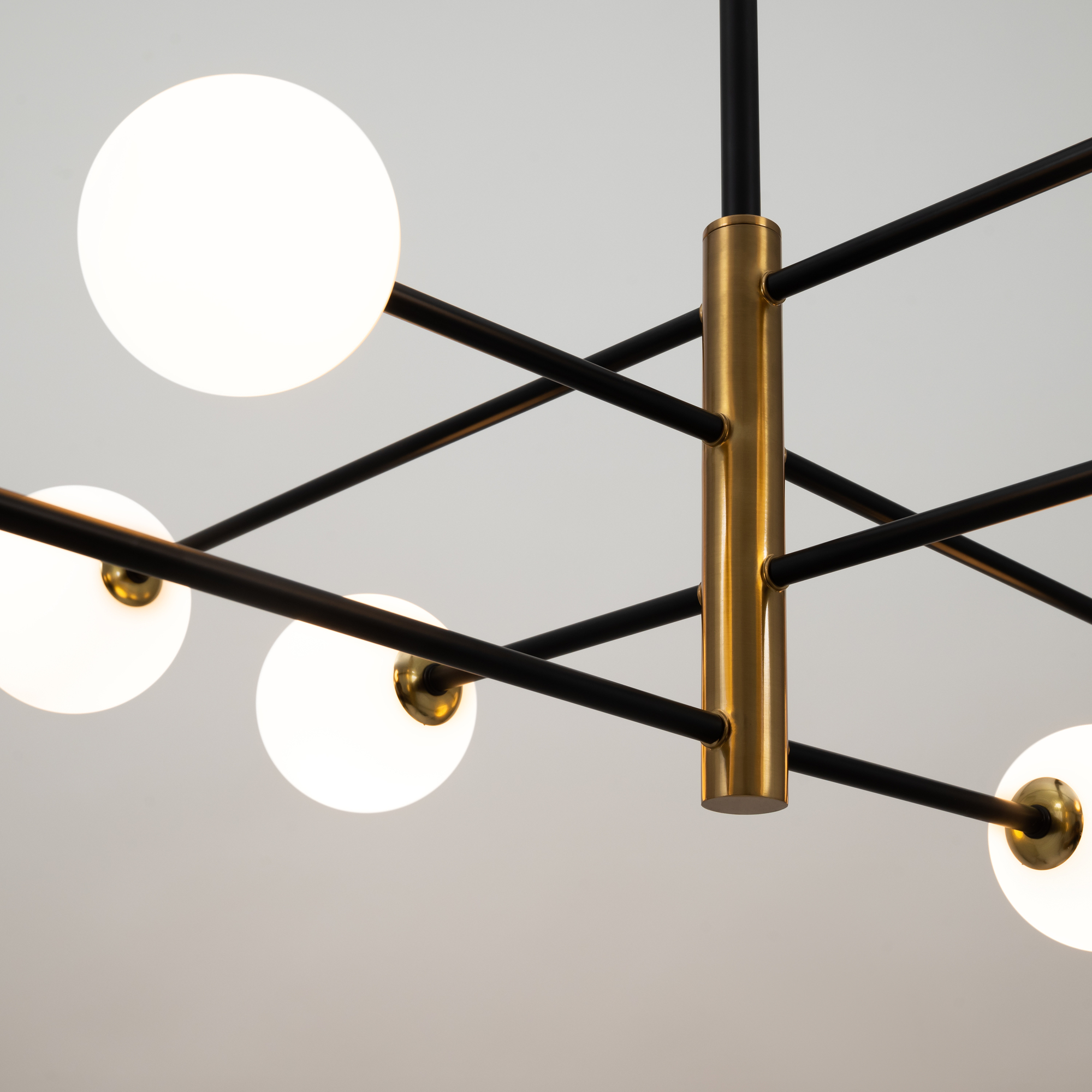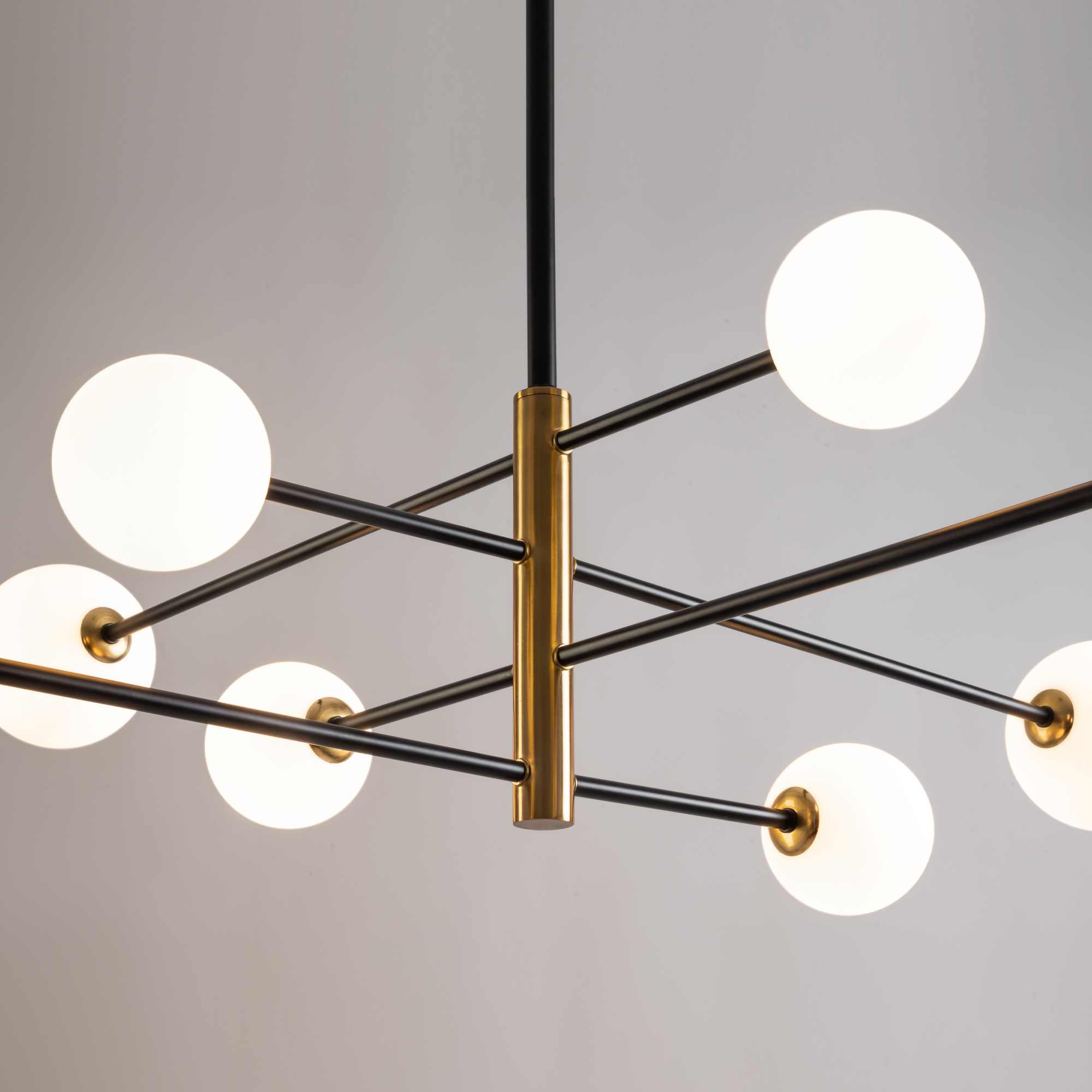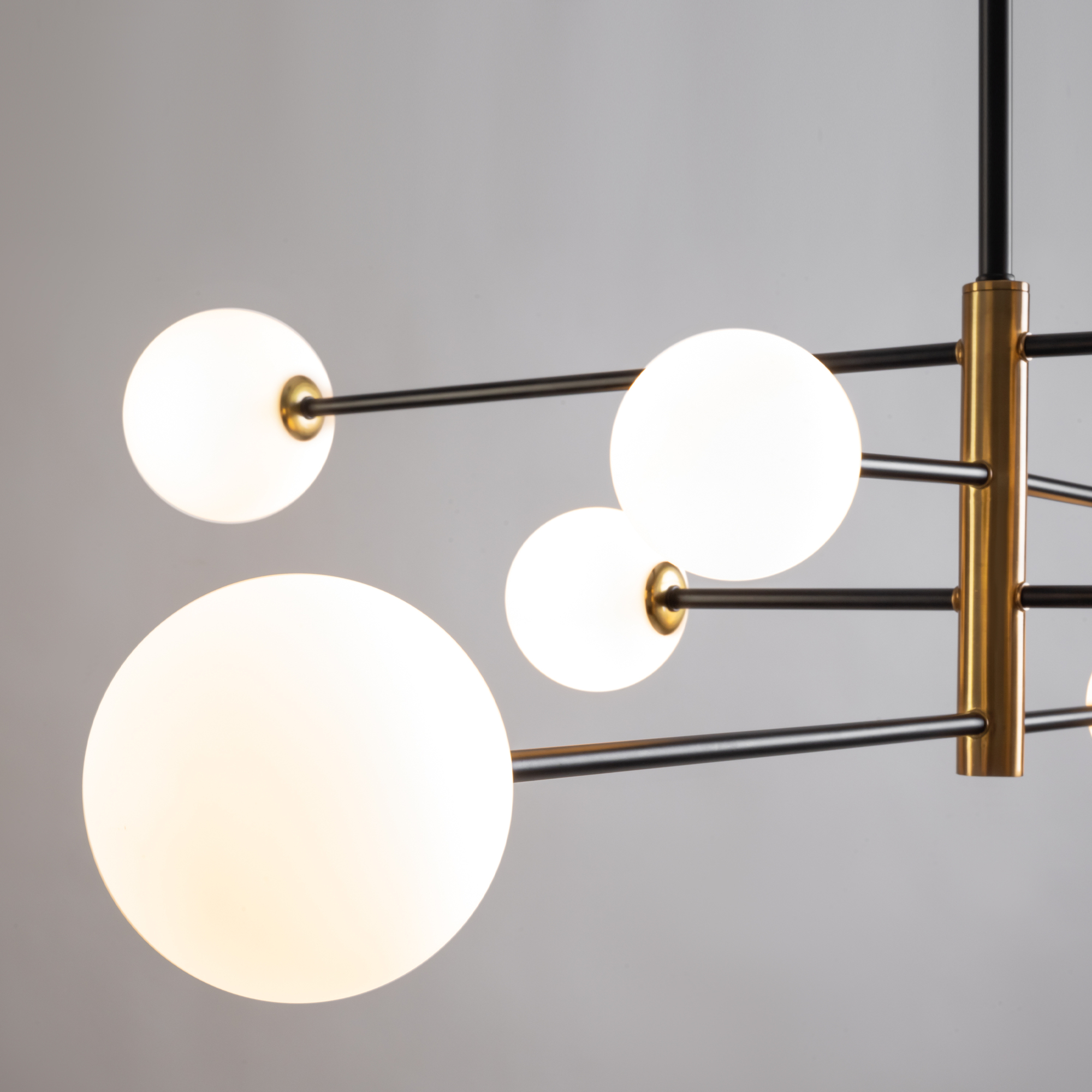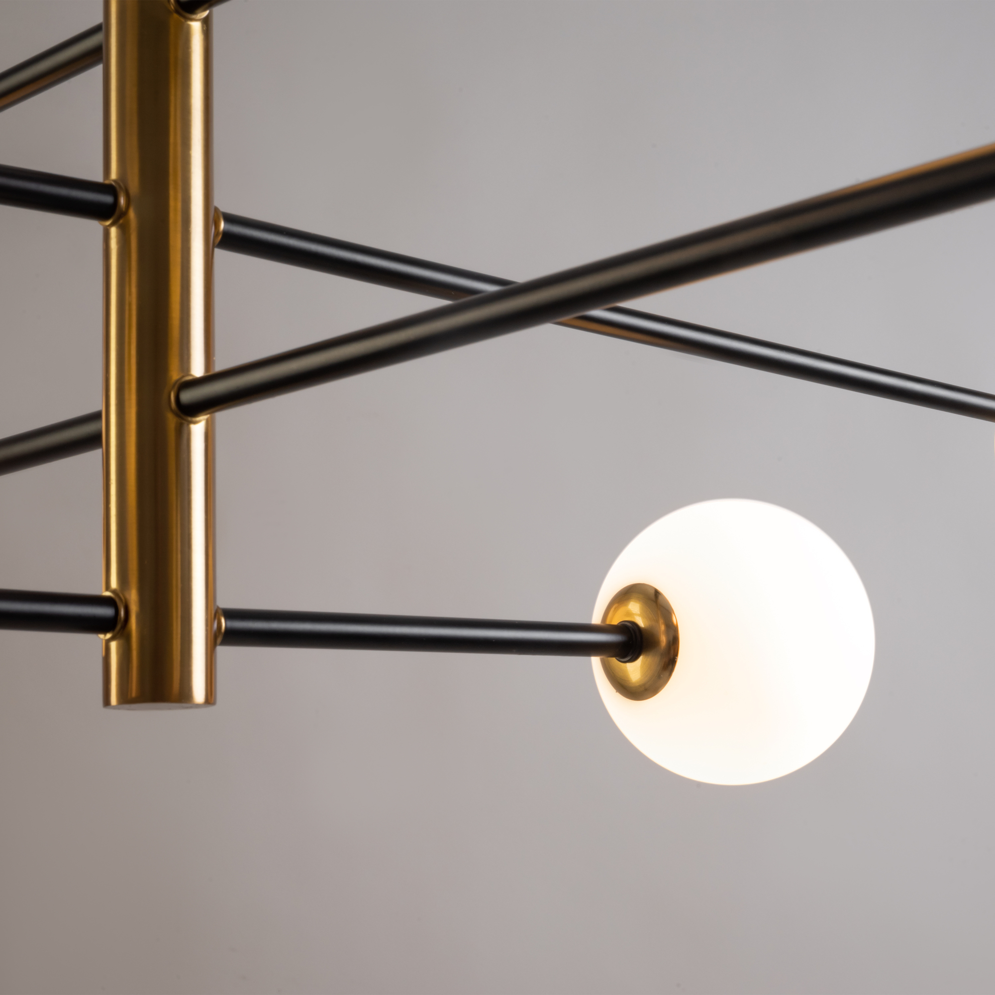 Металлическая арматура. Цвет — чёрный с золотистыми вставками. Плафоны — круглые из белого матового стекла - обеспечивают мягкое заливное освещение. На корпусе бра удобная кнопка для включения. Дизайн — минималистичный Источник света — лампа с цоколем G9.
