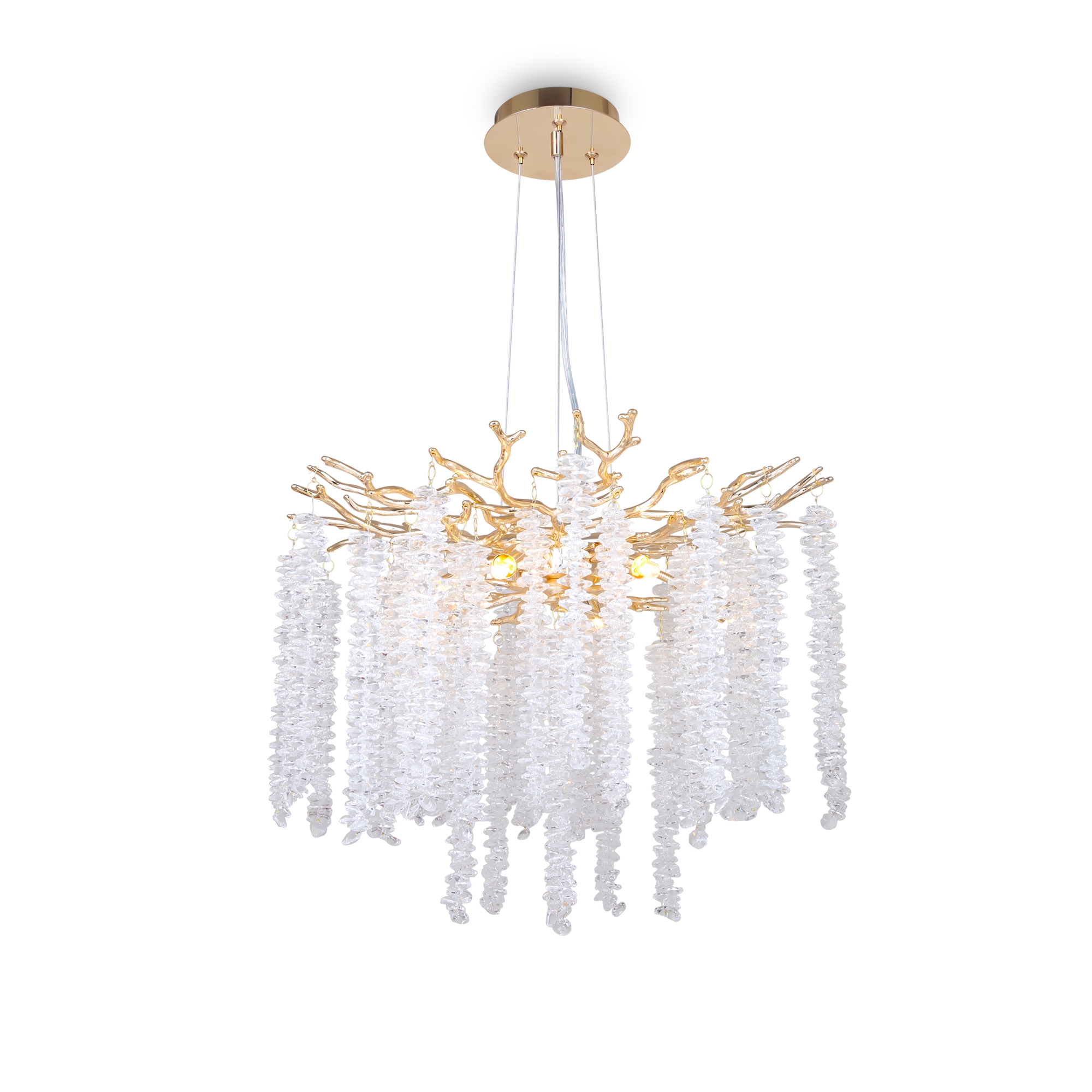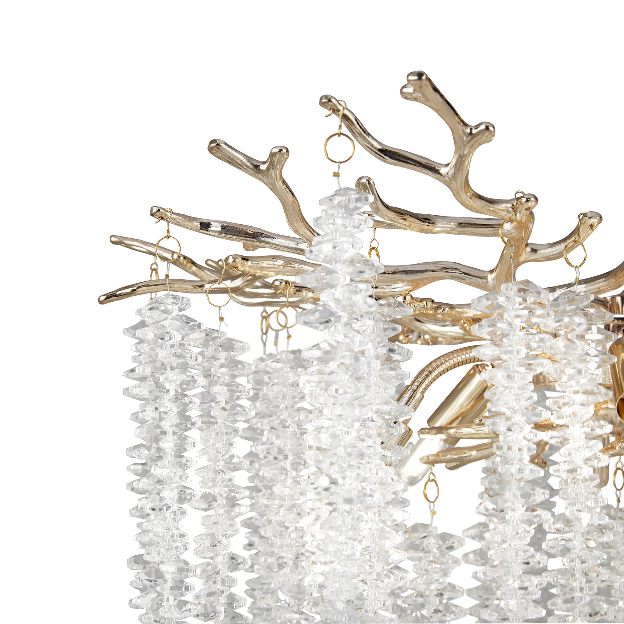 Материалы арматуры —металл, цвет — золото. Хрустальные декоративные элементы напоминают капельки - создают глубокие переливы света. Дизайн в трендовой растительной тематике. Источник света — лампа с цоколем G9 и с поворотной функцией.