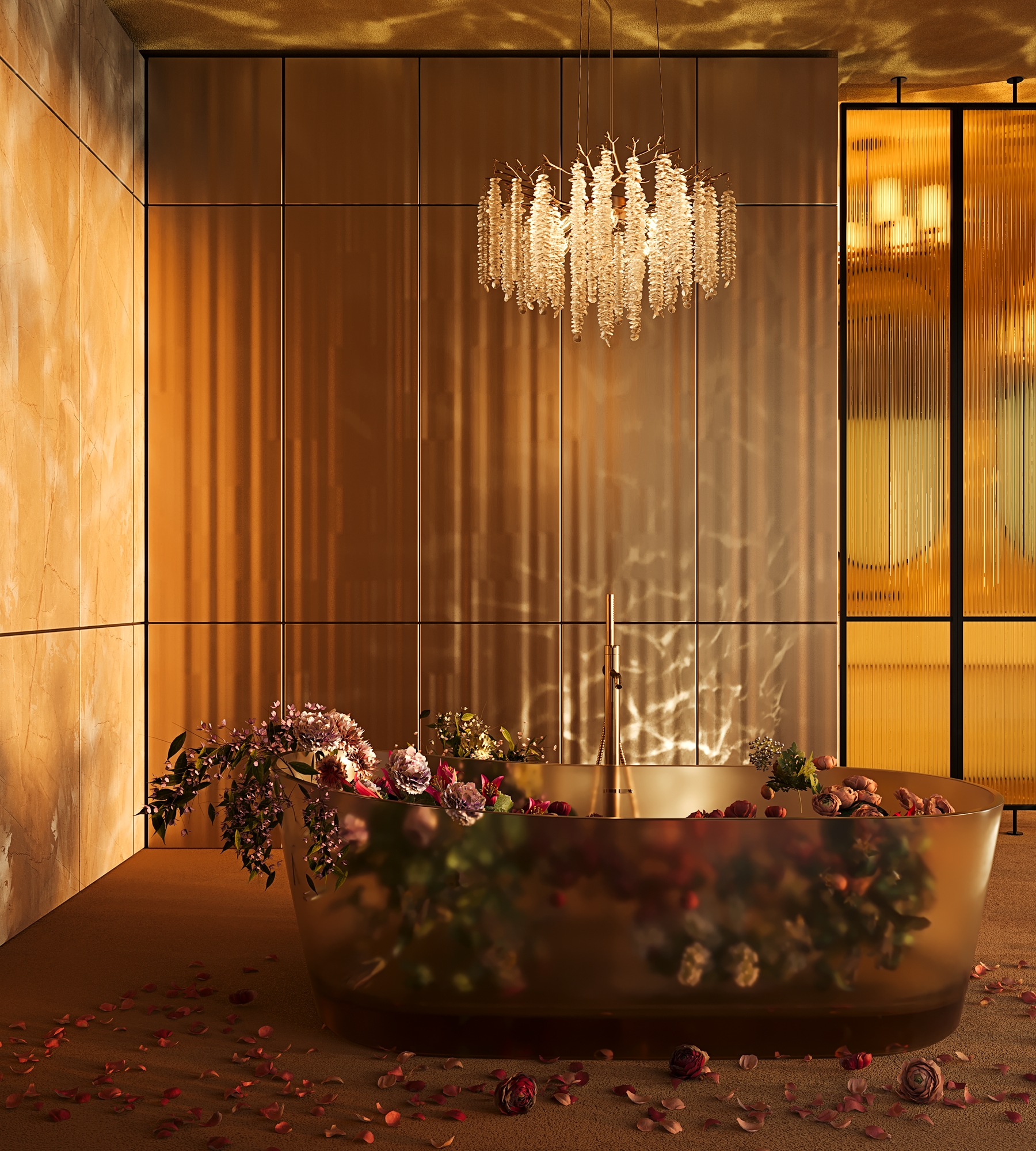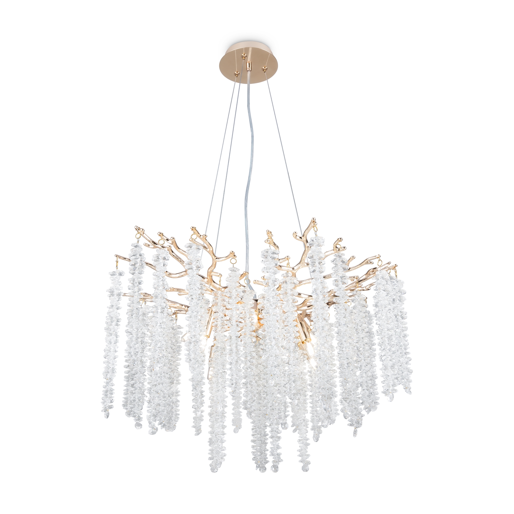 Материалы арматуры —металл, цвет — золото. Хрустальные декоративные элементы напоминают капельки - создают глубокие переливы света. Дизайн в трендовой растительной тематике. Источник света — лампа с цоколем G9 и с поворотной функцией.