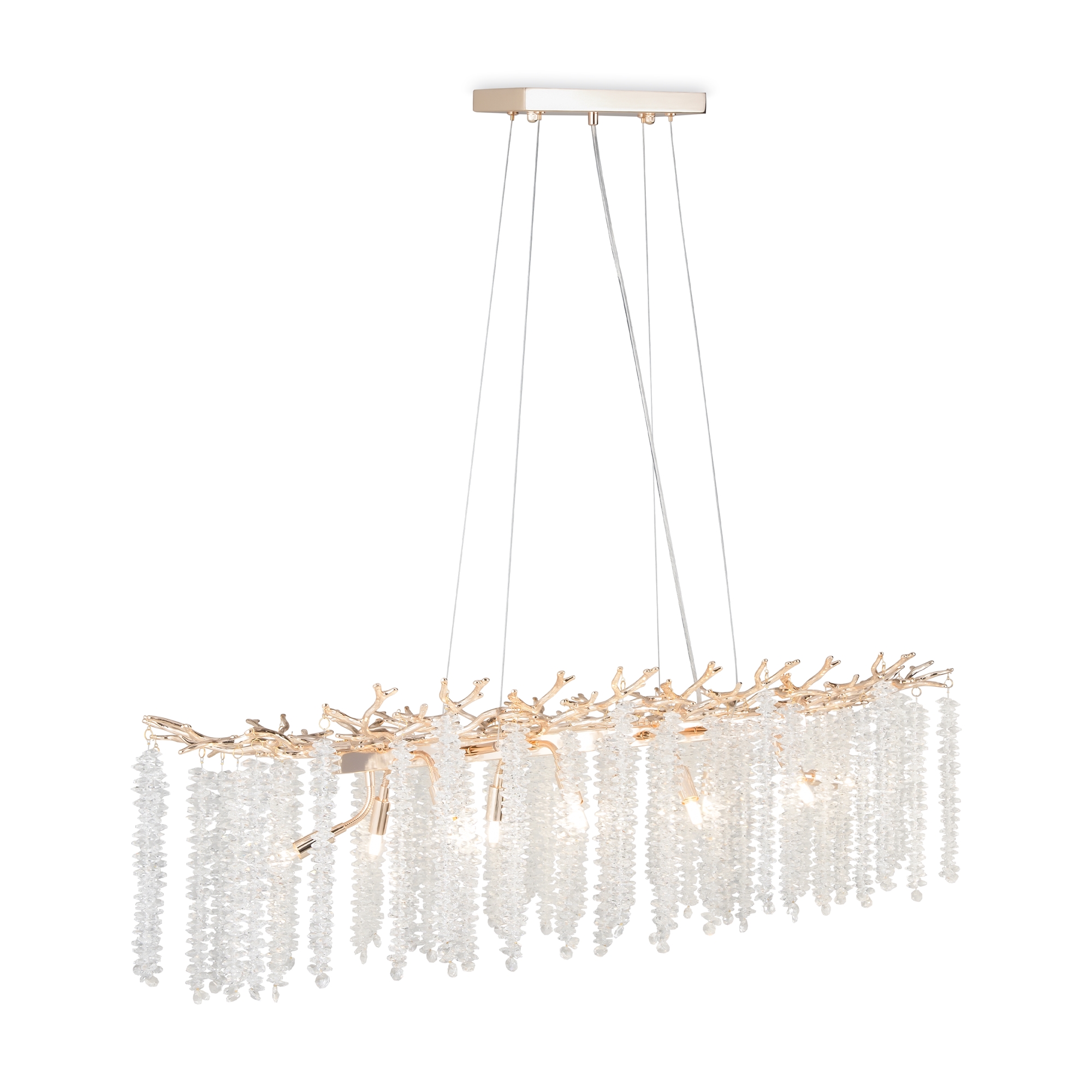 Материалы арматуры —металл, цвет — золото. Хрустальные декоративные элементы напоминают капельки - создают глубокие переливы света. Дизайн в трендовой растительной тематике. Источник света — лампа с цоколем G9 и с поворотной функцией.