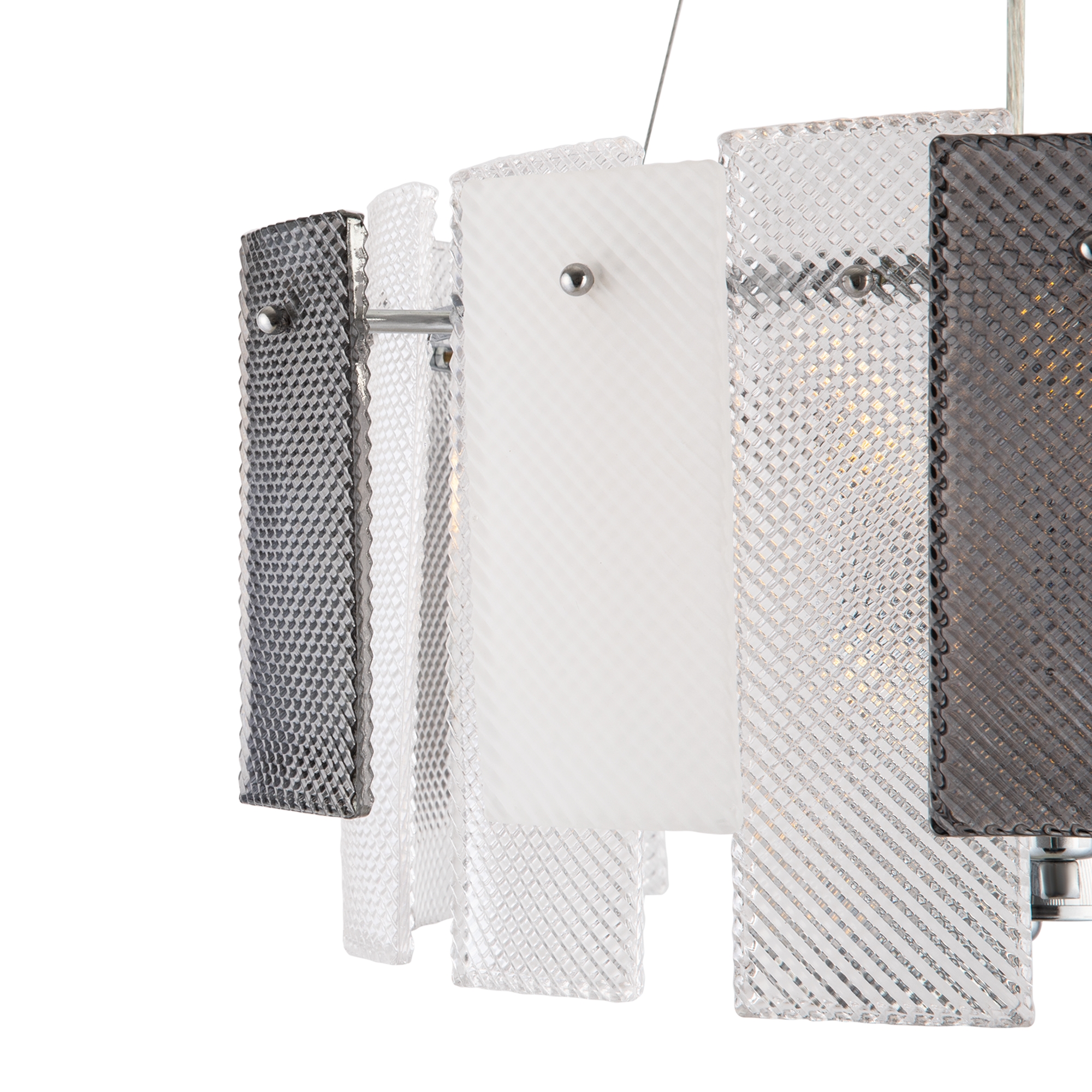 Арматура из металла в двух оттенках: латунь и хром. Декоративные стеклянные пластины прямоугольной формы. Эффектная комбинация прозрачного, матового стекла и стекла в тон арматуре. Источник света – лампа с цоколем Е14.