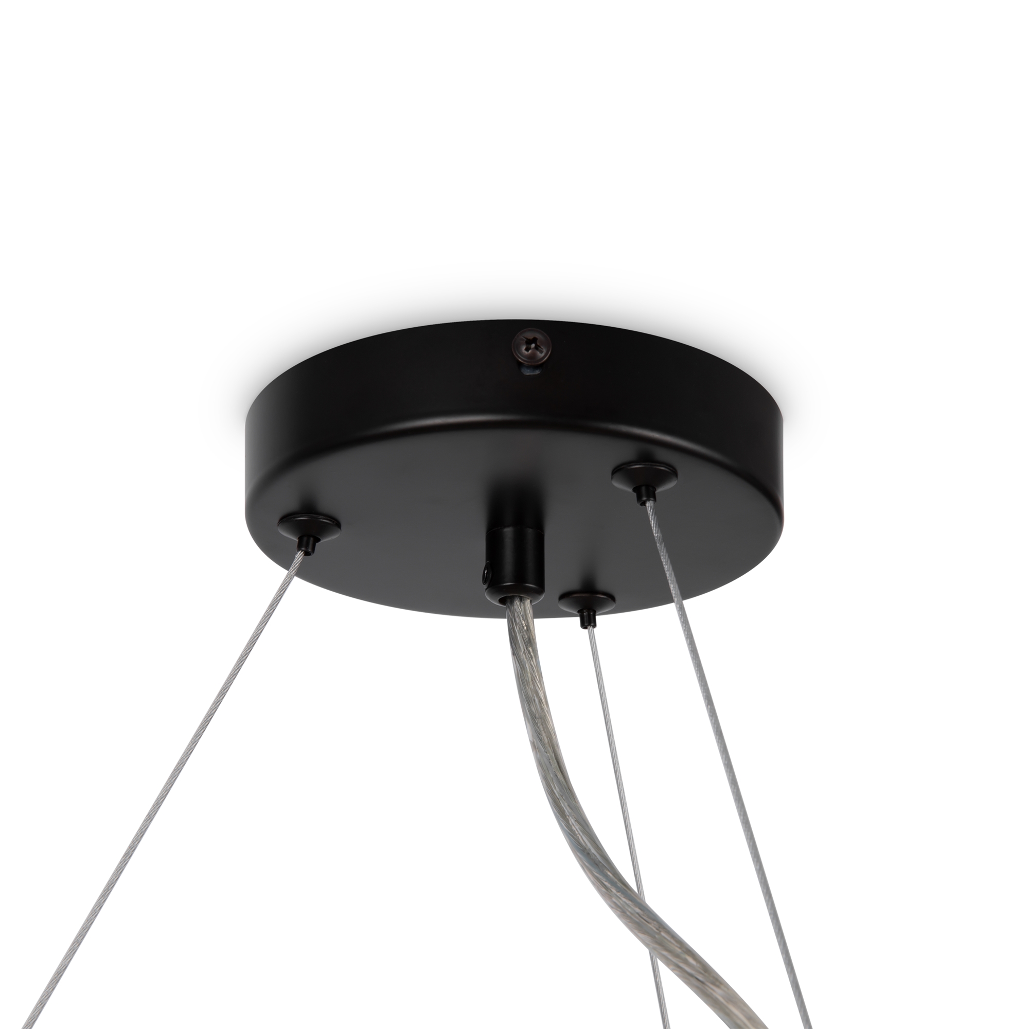 Металлическая арматура в четырех цветах: матовый черный, хром, золото, латунь. Плафоны — выдувное стекло. Цвета — дымчатый, янтарный, коньячный. Дизайн с имитацией молекулярной структуры. Высота подвесных светильников регулируется тросом. Лампа с цоколем G9.
