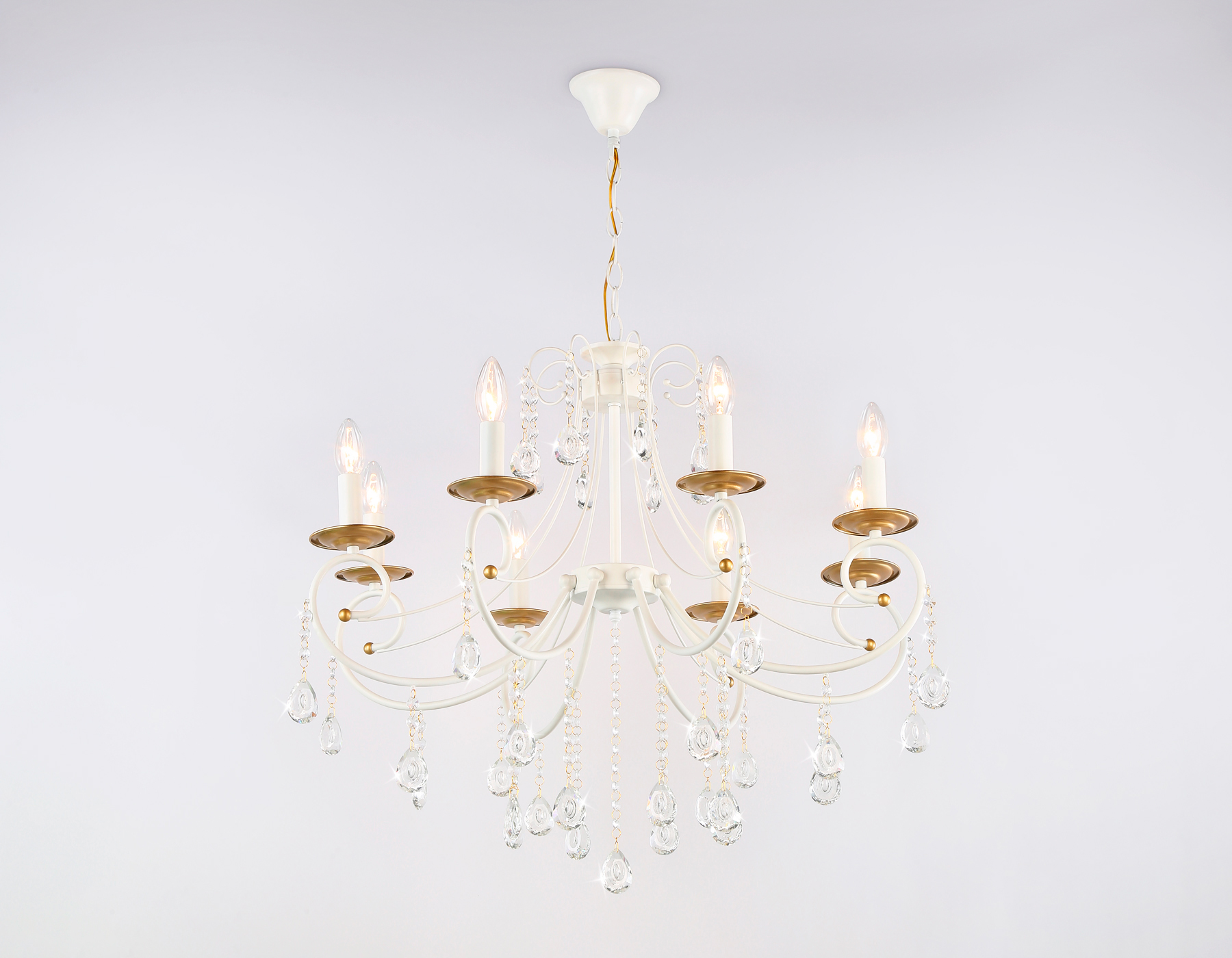 Подвесная люстра с хрусталем из коллекции TRADITIONAL. Модель TR4917 представлена в классическом стиле. Люстра выполнена из металлического каркаса белого и золотого цвета и декорирована превосходным прозрачным хрусталем. Для данной модели подойдут лампы с цоколем Е14. Люстра будет прекрасным дополнением в любом помещении.