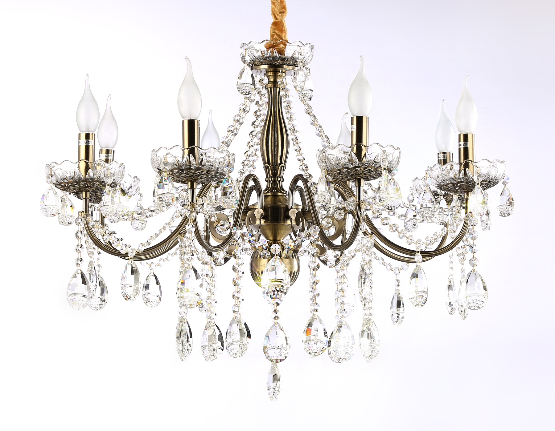 Подвесная классическая люстра из коллекции TRADITIONAL. Модель TR4950 выполнена из металлического корпуса бронзового цвета и декорирована превосходным прозрачным хрусталем. Для данной модели подойдут лампы с цоколем Е14. Люстра будет прекрасным дополнением в любом помещении.